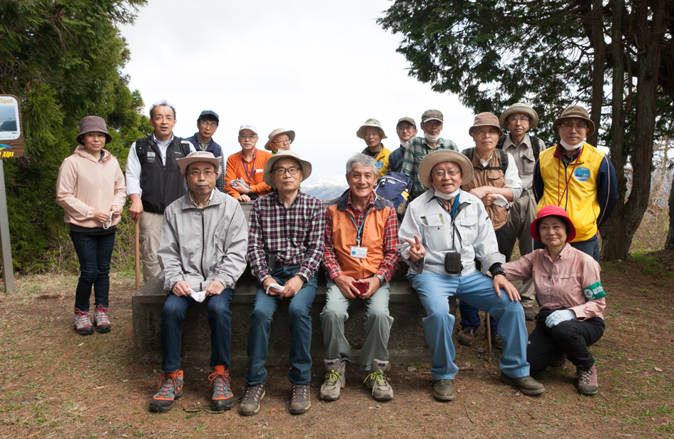 オオシマザクラを見ながらの日立アルプス縦走の1日もそろそろ終わりである。冨岡さんの話をみんなで聞きながら、山道を下りはじめる。