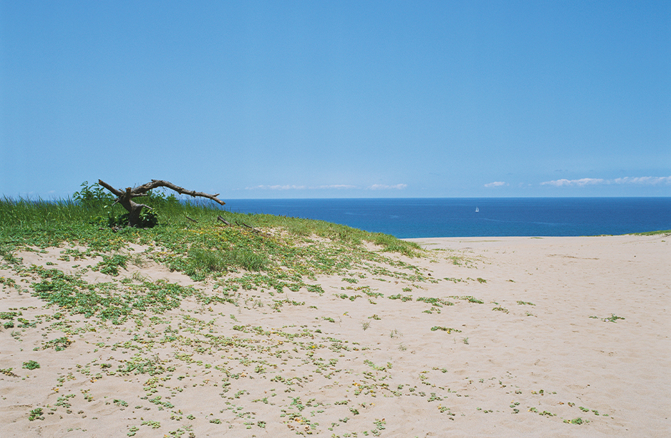 大きな砂の丘を越えても、誰かとすれ違うことはなかった。そして歩いても歩いても、海はまだまだ遠いのだ。砂漠みたい。広角レンズでシャッターを切っても、映るのは白い砂と海ばかり。