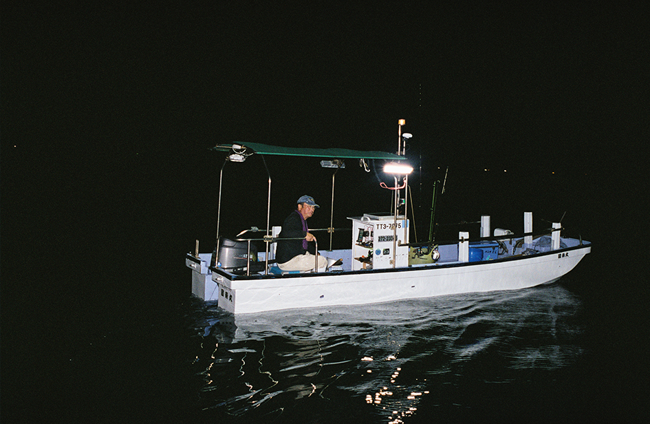 主に海岸を撮影して写真集を作るつもりだという話をしたら、「近所のおじさんが時々、夜、飛び魚釣りに出るからその船に乗せてもらえるかも」と、荒尾さんが教えてくれた。それは是非乗ってみたい! と即答するとすぐに手配してくれて、荒尾さんも一緒に夜釣りへ行くことになった。