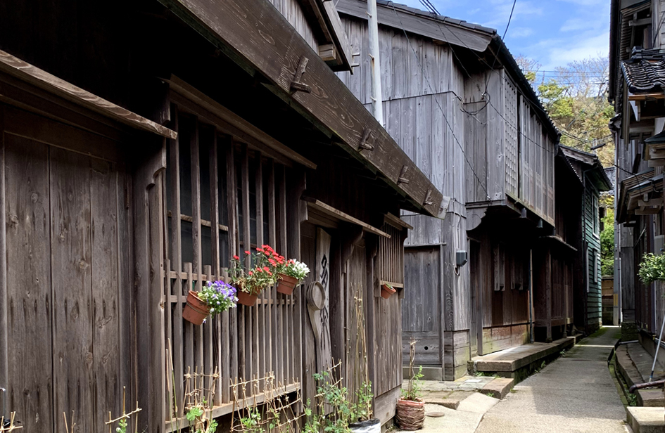 まだ道路が整備されていない時代、宿根木の集落への玄関口は海だった。海から集落に入ると、すぐにこの道が現れた。だから、外から来る人も外に出て行く人もこの狭い道を通った。