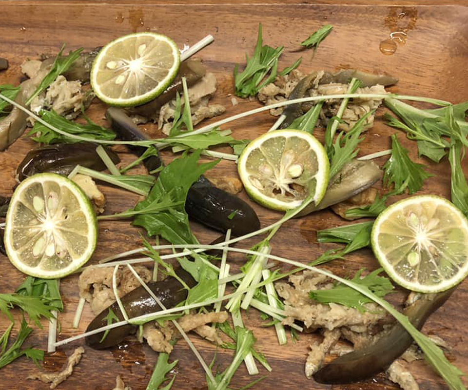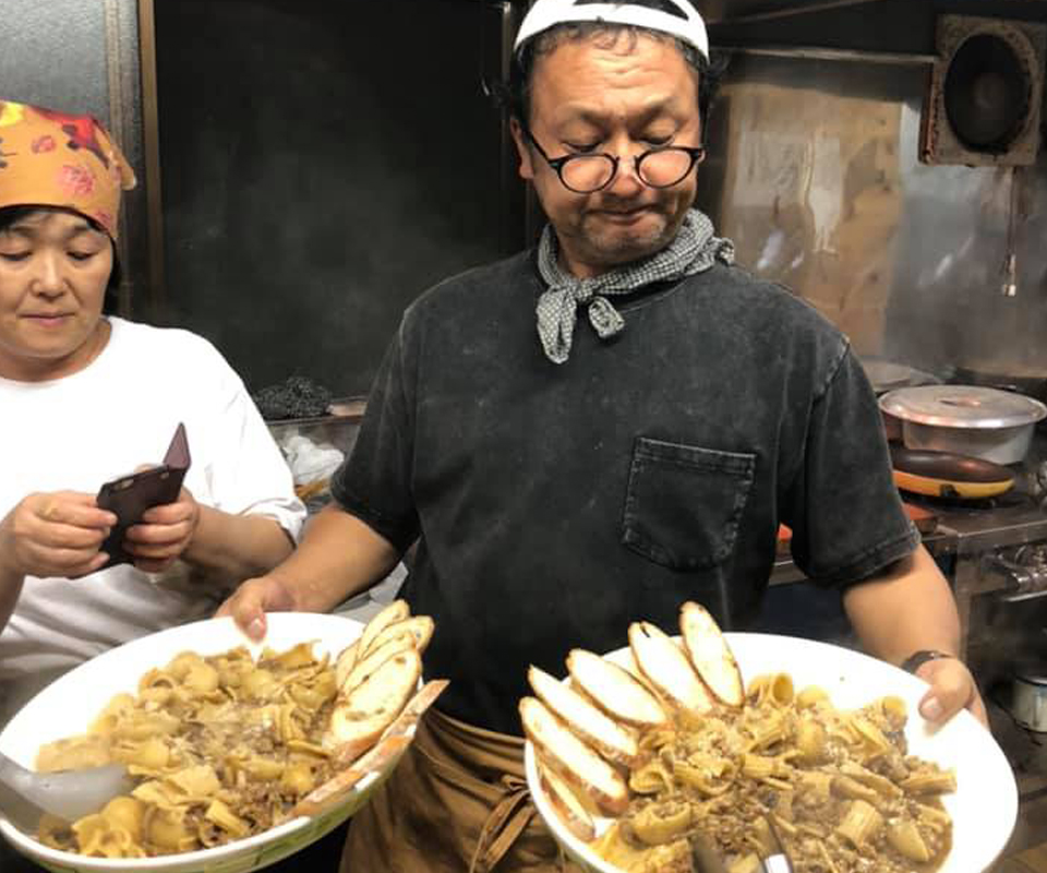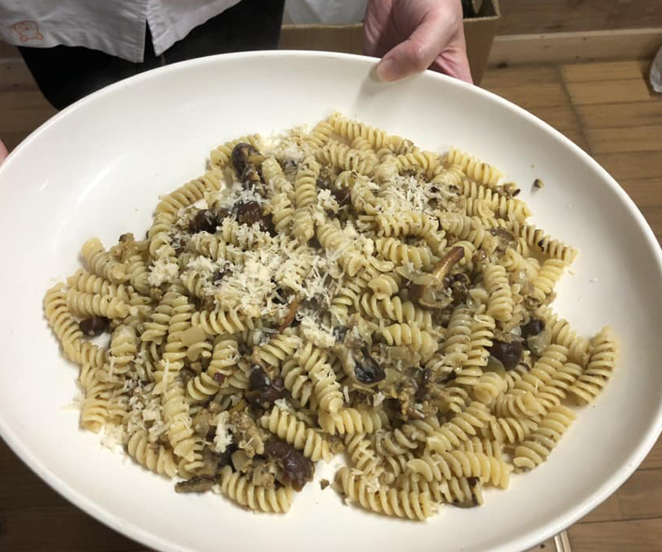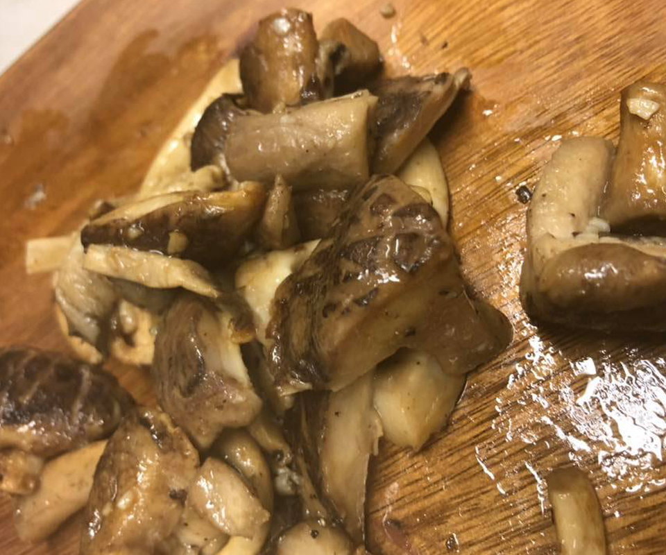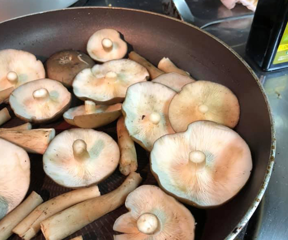 きのこ名人の活躍はまだまだ続く。前菜に、パスタに、メインに……どこの洒落たビストロ?という料理がどんどん仕上がって、我々の胃袋に収まって。どのきのこがどんな調理法に向いているか、ハチさんは長年の経験と探究で知り尽くしているような名人だった。お手伝いと称して真っ先に摘み食いしたい私にちゃんと気づいて、のんち副隊長は(わかってるよ)と目で語りつつお皿を手渡してくれる。