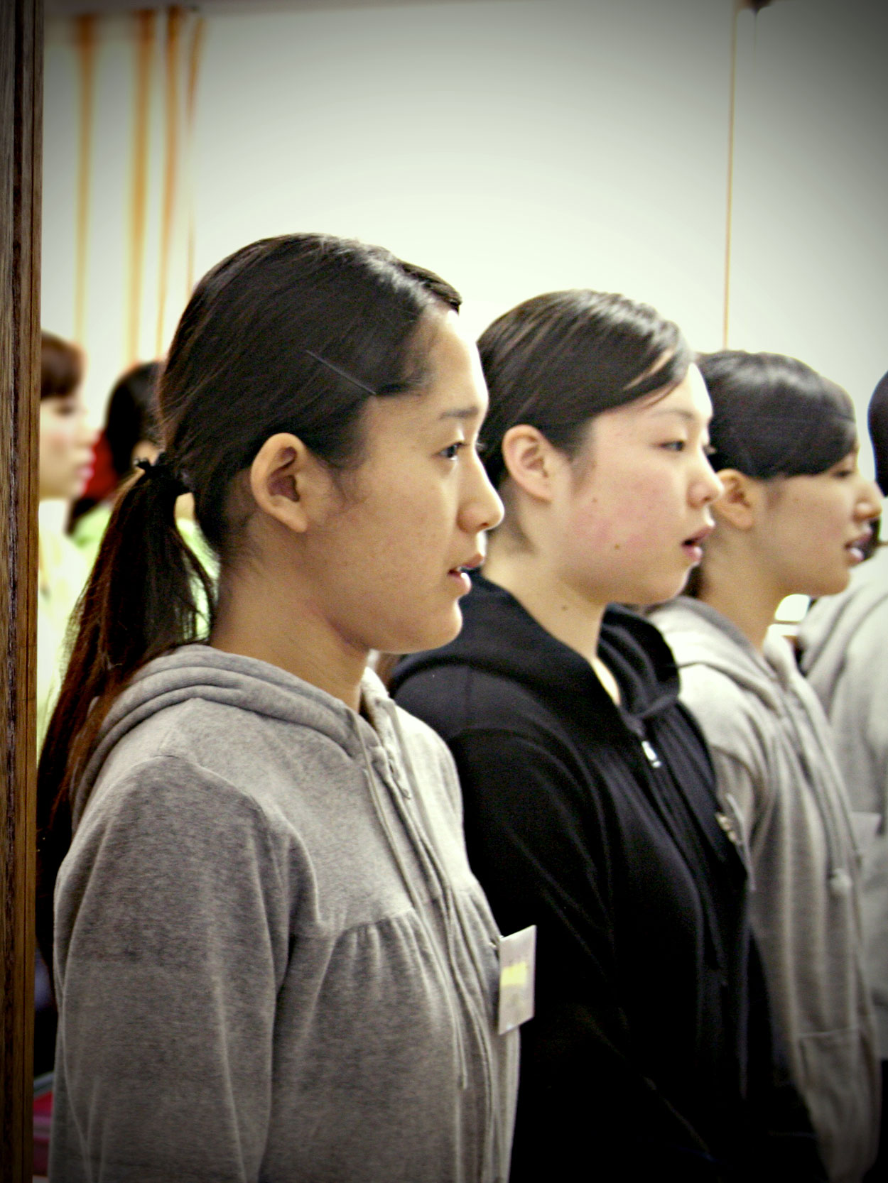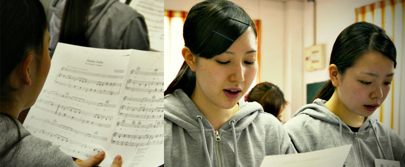 声楽の先生がやってきたので、一番後ろの席に着いた。この授業は新入生の50期生だけでなく、47、48、49期生も参加して、計16名いた。47、48期生は既に卒業しているのだが、早起きして勉強を続けているのである。もちろん全員女の子なので、女子高に紛れ込んだような気分である。なんだかワクワ……いやソワソワして落ち着かなかった。
