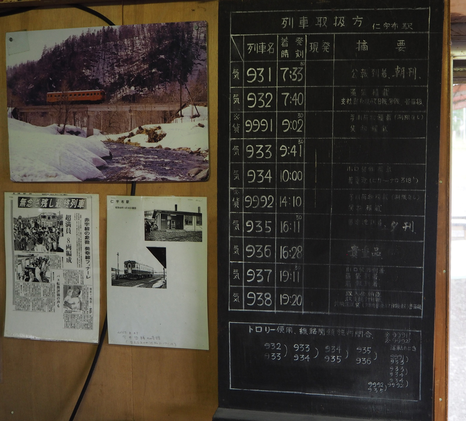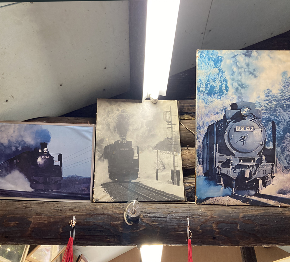 入国者のなかには鉄道ファンも多いそうで、ファンの心をくすぐる作りになっている。アイヌ語で 「村を守る神」という意味のコタンコロカムイと掲げた建物の外装には、美幸線時代の線路の枕木を使用。建物のなかには、美幸線時代の写真や駅に掲示していた備品が飾られている。