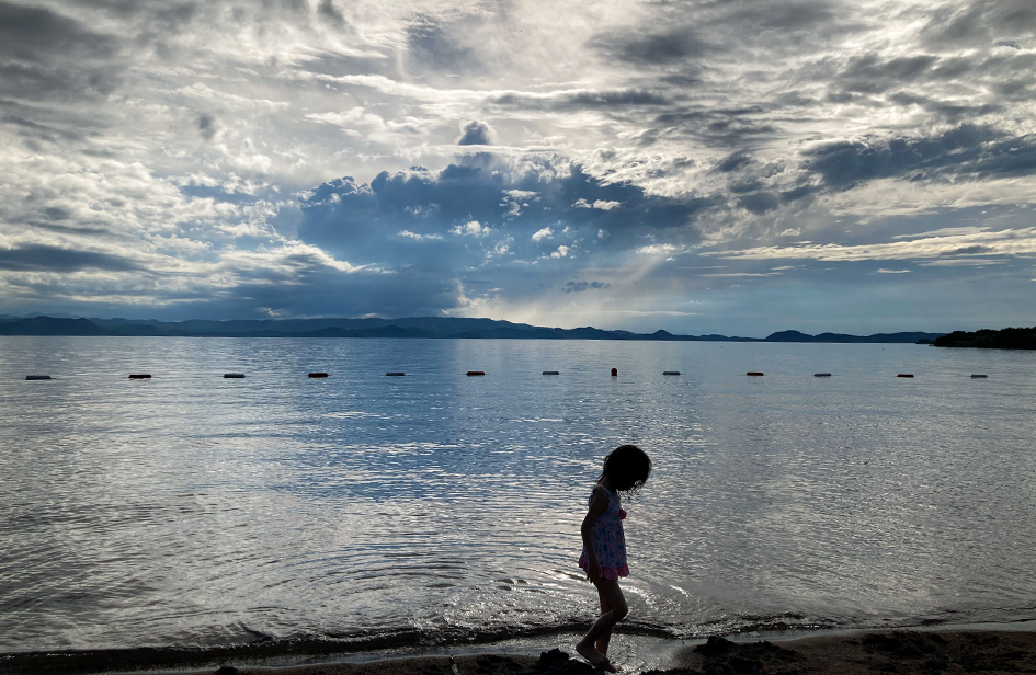 夕方になると、涼しい風が湖畔を吹き抜け、急に静かになった。