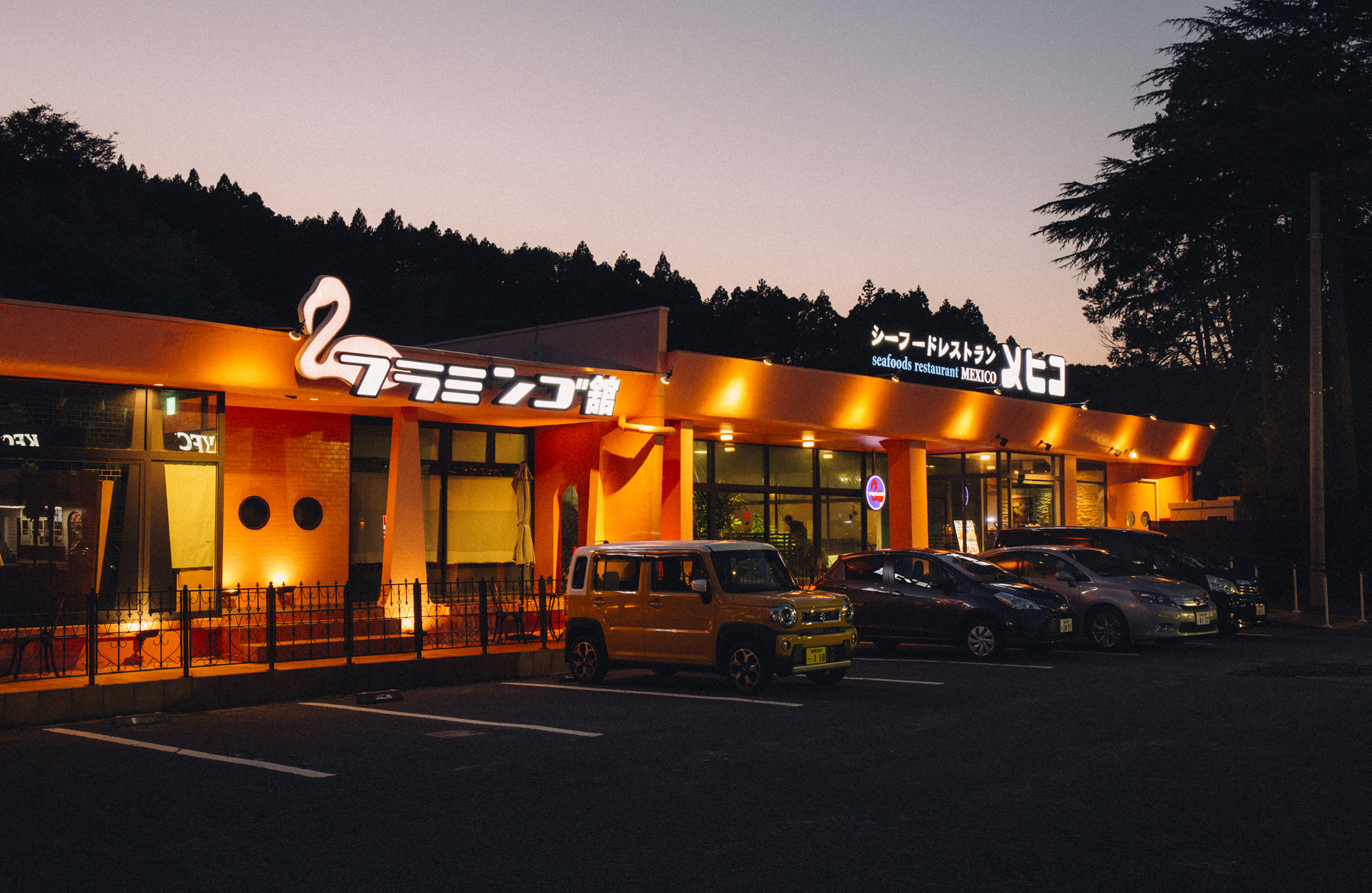 現在は和食からラーメン、ファストフードにいたるまで様々なタイプの飲食店が軒を連ねる街道だが、メヒコが創業した1970年の道路は未舗装で、食事ができる店はほとんどない片田舎だった。
