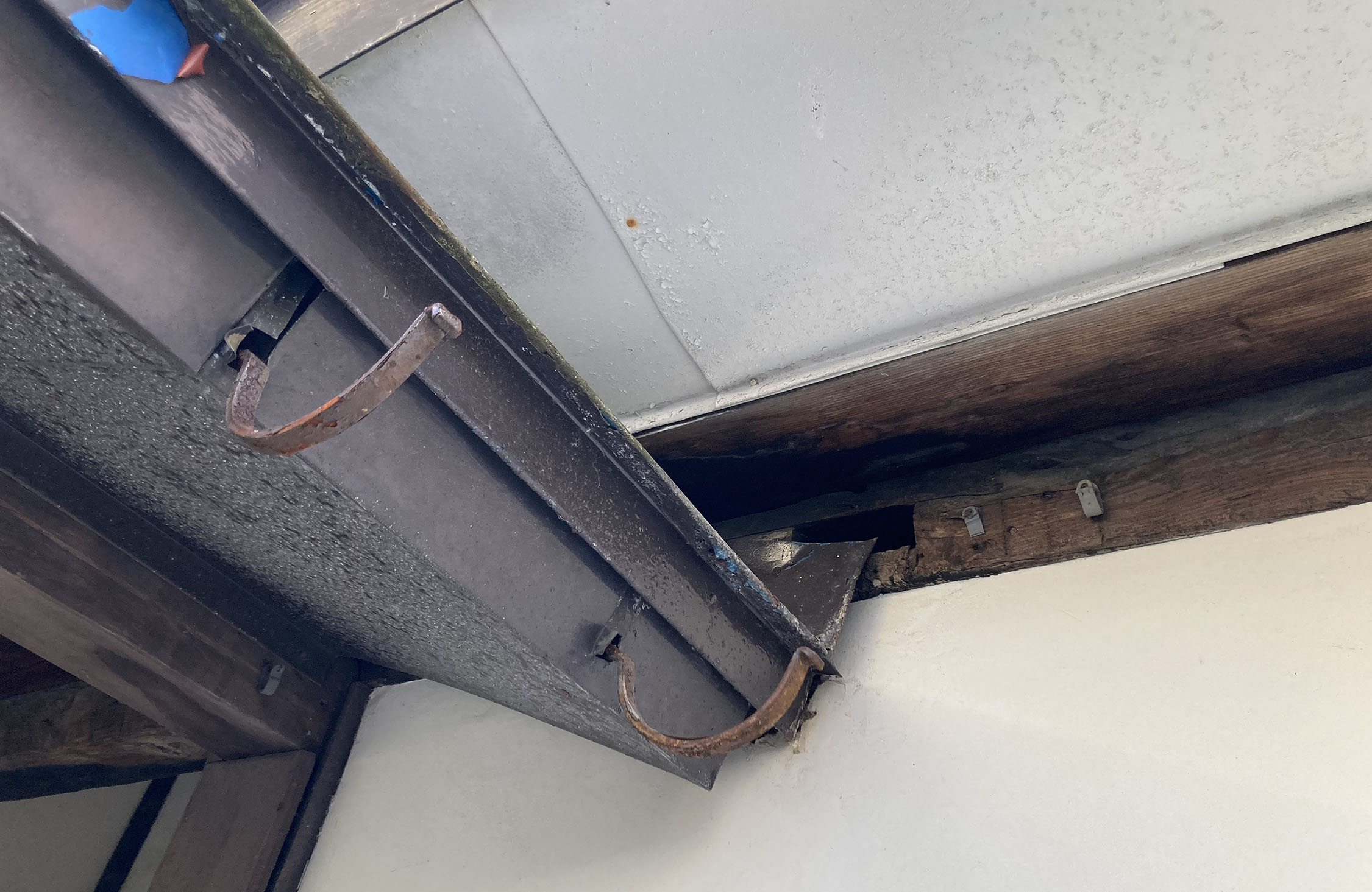挨拶を交わすと、佐藤さんが「ここ、見てください」と玄関の上のほう、屋根のすぐ下を指さした。そこには、言われなければ絶対に気づかないレベルの小さな穴が空いていた。
