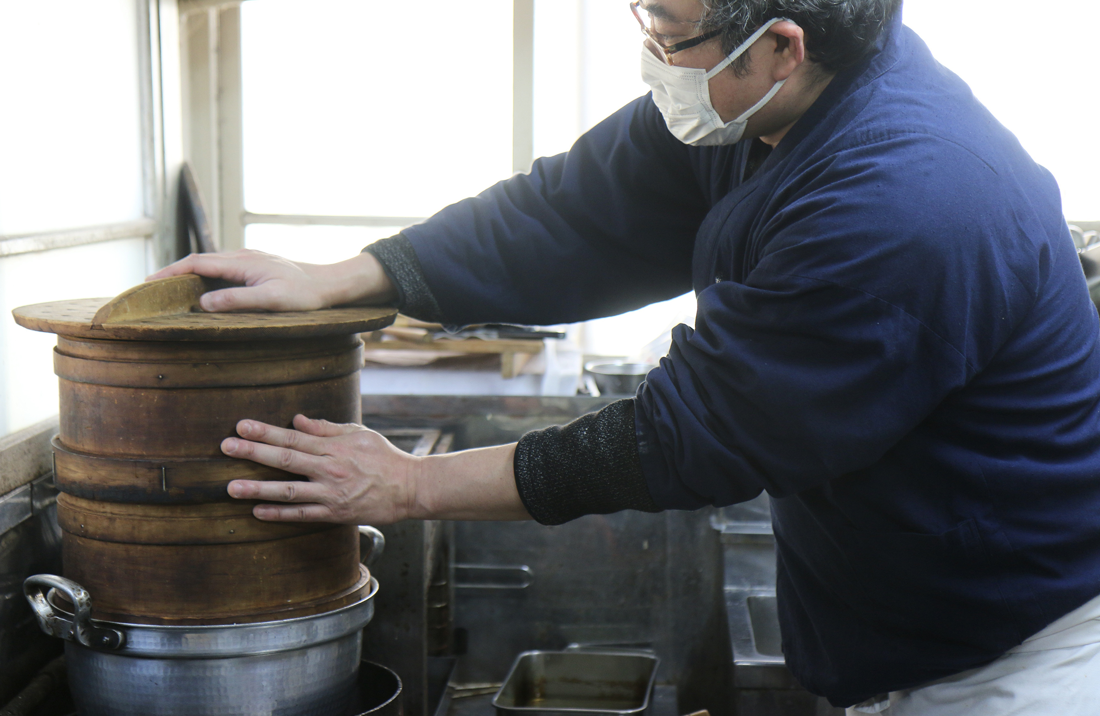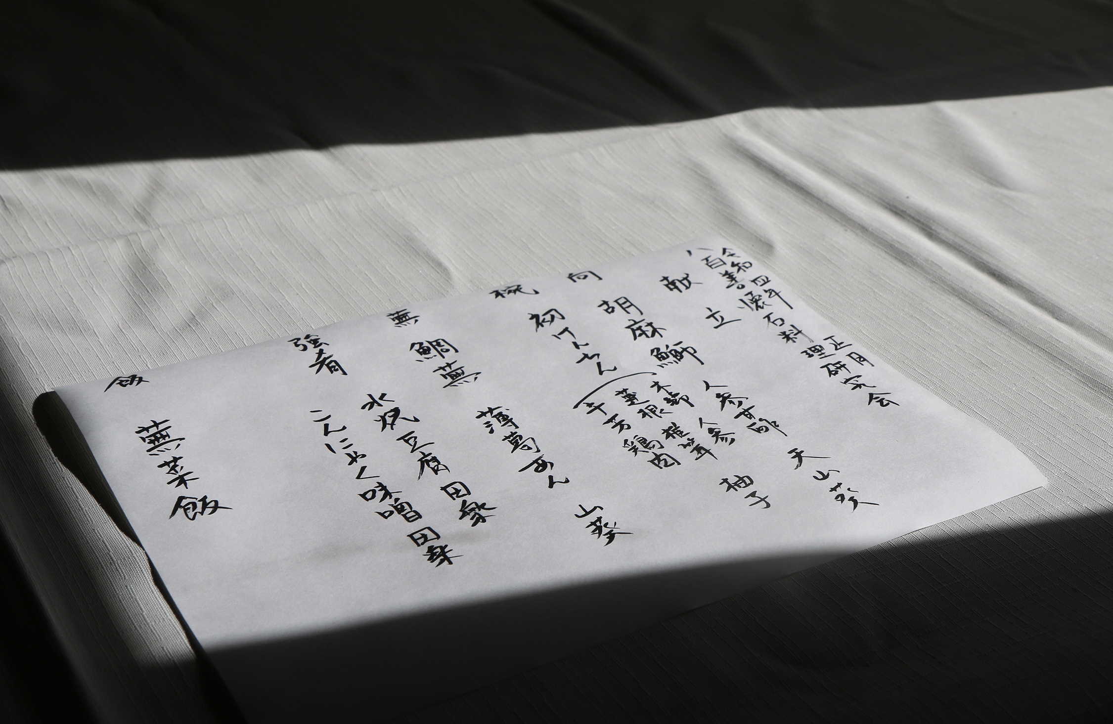 この日の献立は、鰤(ブリ)を使った向付(むこうづけ)をはじめ、鯛(タイ)と蕪の蒸し物、田楽の三菜と、だしと塩だけで仕上げるけんちん汁、蕪の葉を混ぜた菜飯だ。毎回十一代目が献立を考え、十代目に見てもらって整えるのだという。