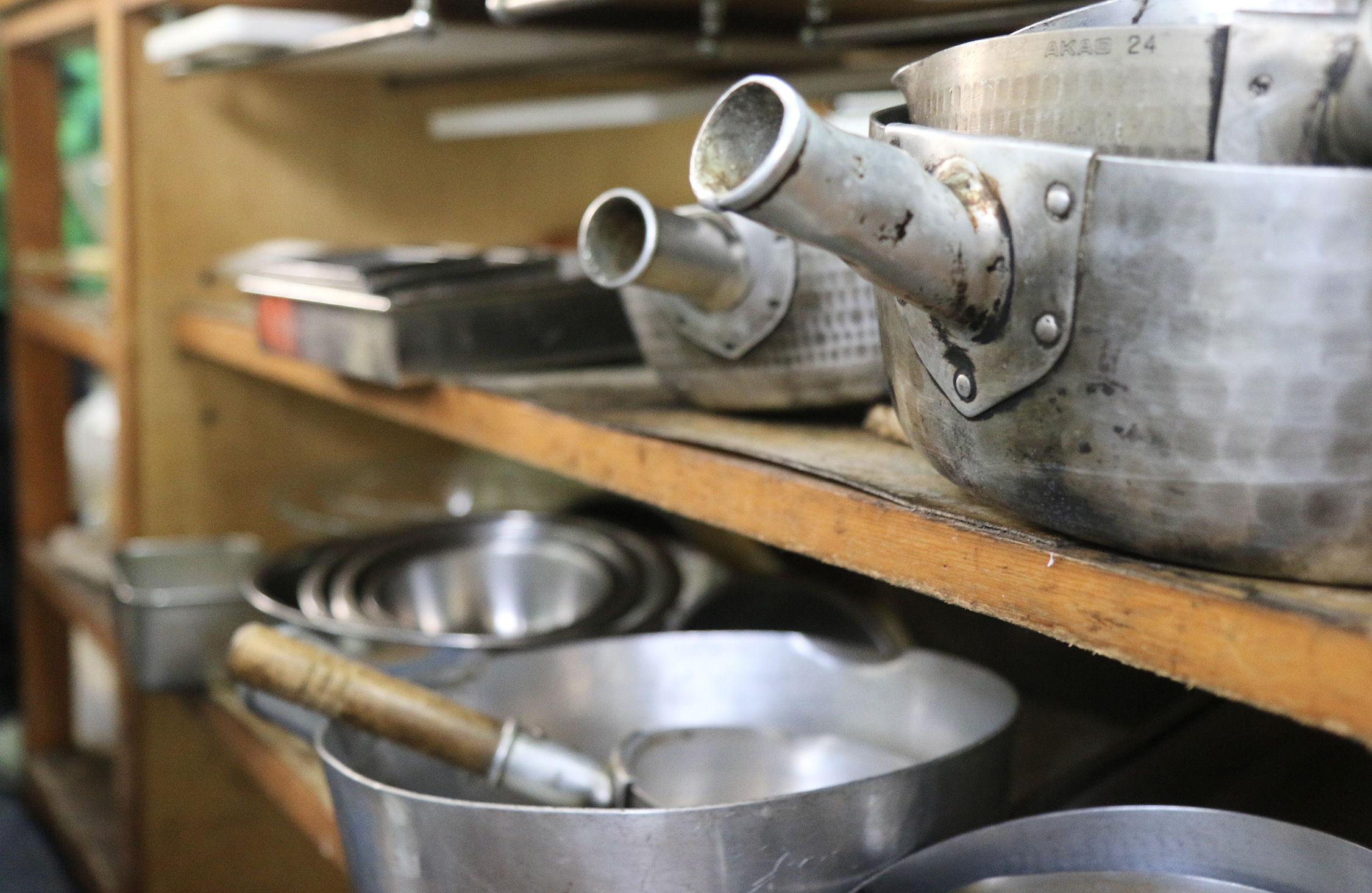 ふるい日本家屋のなかには広々とした客間があり、大きな窓からさあっと柔らかな光が差し込んでいた。そこを横切っていくと、日本料理に必要な道具が所狭しと並ぶ厨房がある。料理教室では、ここで十一代目と一緒に手を動かしながら懐石料理を仕上げるのだ。