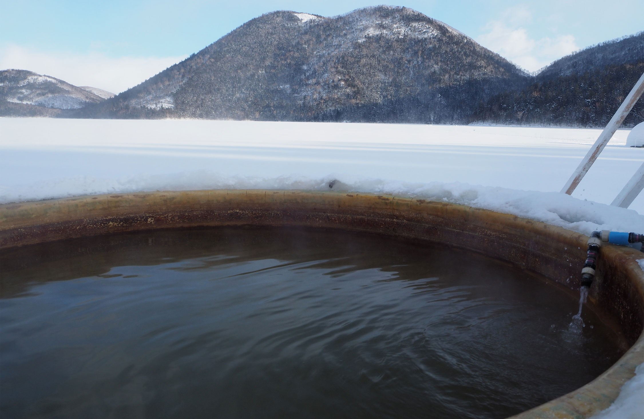 すっかり身体が冷えた僕は、時計を見た。帰りのバスまで、まだ十分に時間がある。逃げ込むように駆け込んだのは、氷上露天風呂。2度目は先客がいなかったから、人生最速のスピードで服を脱ぎ捨て、お湯に滑り込んだ。ひとりでのんびり温泉に浸かっていたら、身体がじんわりほぐれてくるのがわかった。そして、片道7時間かけてきたかいがあったと思った。
