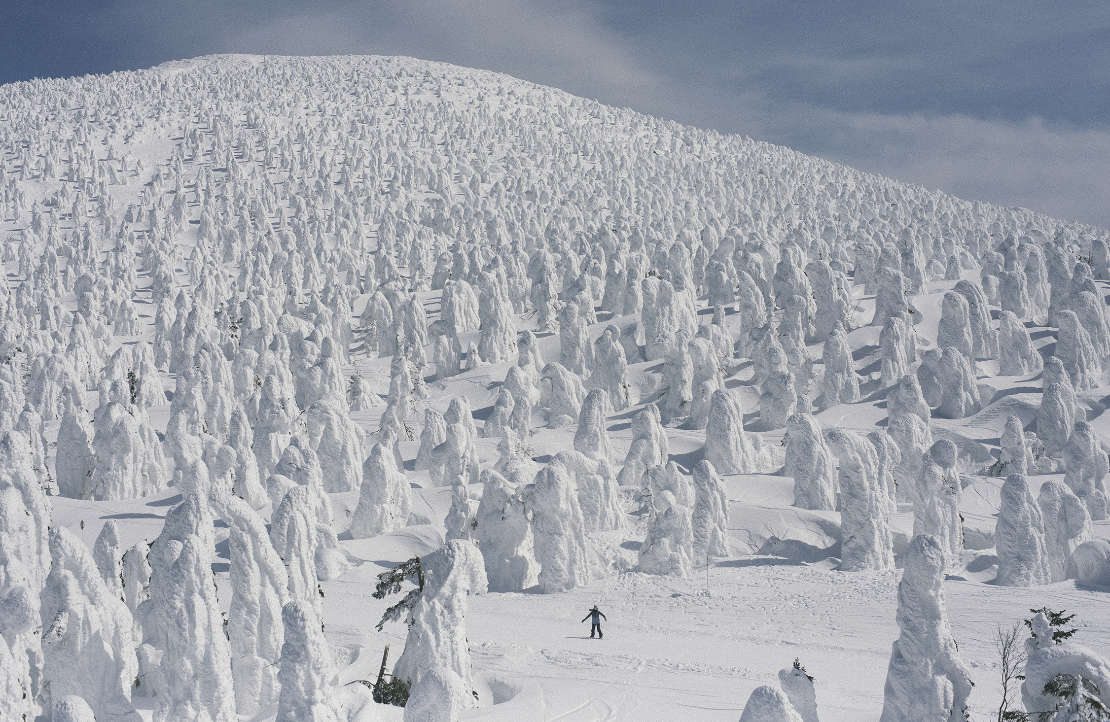 蔵王温泉は、蔵王連峰西側山麓の標高880メートルに位置する温泉地。西暦110年ごろ「日本武尊(やまとたける)が東征の際、従軍した吉備多賀由(きびのたがゆ)に毒矢が当たり苦しんだが、温泉を発見して入浴したところ全快した」という伝説が残されている。開湯1900年という真偽は別として、古い文献や資料からもその存在は記されてきた歴史ある温泉地であることは間違いない。昭和のスキーブーム以降は国内有数のスキーリゾートとして発展した。ゲレンデの規模と雪質のよさ、そして世界的に見ても稀な樹氷を間近で見られることからスキーヤーとスノーボーダーの聖地として今日にいたる。