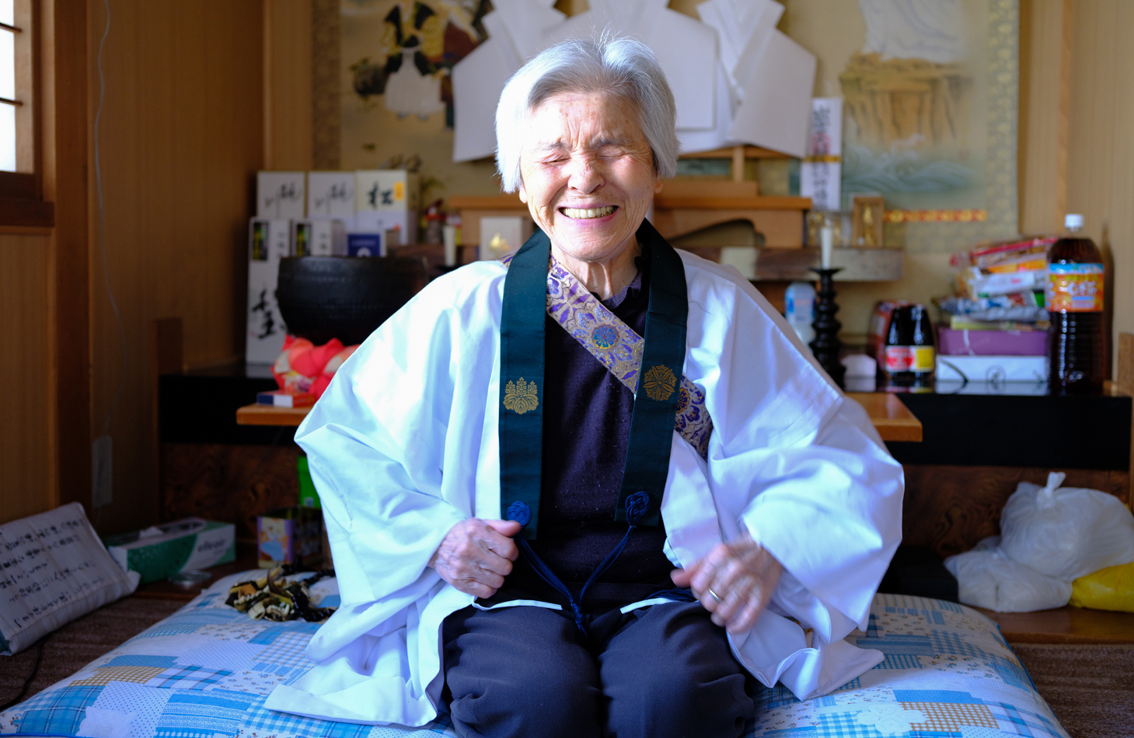 「それで、誰をおろしたいの?」と、白いイタコの装束を纏ったタケさんは優しい顔で私に尋ねた。「死んだおじいさんをお願いします」と私は答えた。12年前に亡くなった祖父は、売れないアーティストだった私をよく理解してくれていた。今でもやめずに写真を続けてこられたのは、祖父の応援のおかげもある。その祖父と久々に話したい、と私は決めていた。