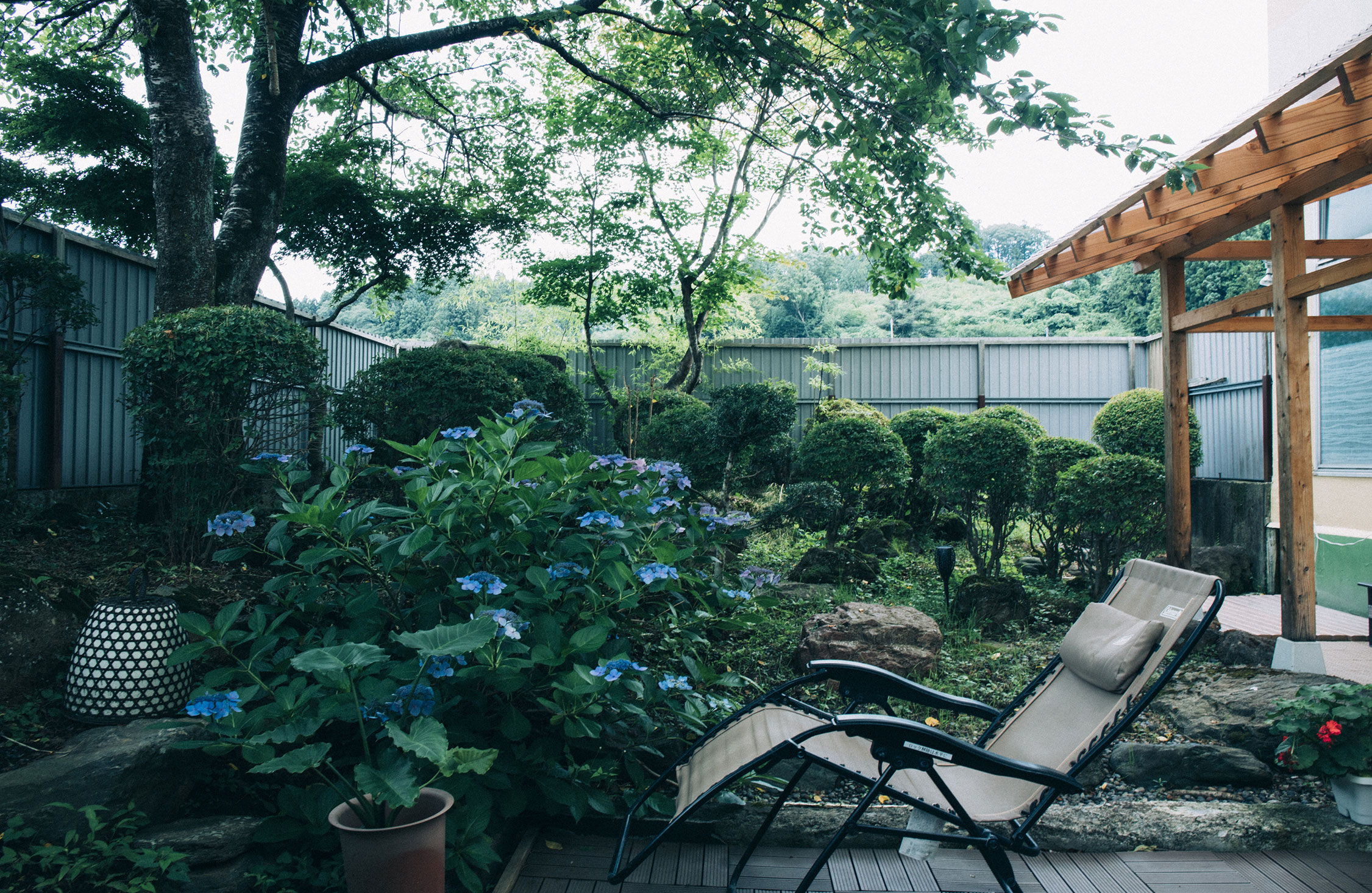 水風呂を終えて外気浴へ。体を横たえると、また風が吹いた。木々が揺れてサラサラと音を立てる。太陽が徐々に雲間から顔を出す。カエルは相変わらず苔むす岩に佇み、セミは遠くで鳴いている。すべての出来事がスローモーションのようにゆっくりと展開し、そしてまた、「チリィイイイン」と高く澄んだ音が鳴った。よく見ると、それは岩手の夏の風物詩、南部鉄器の風鈴だった。