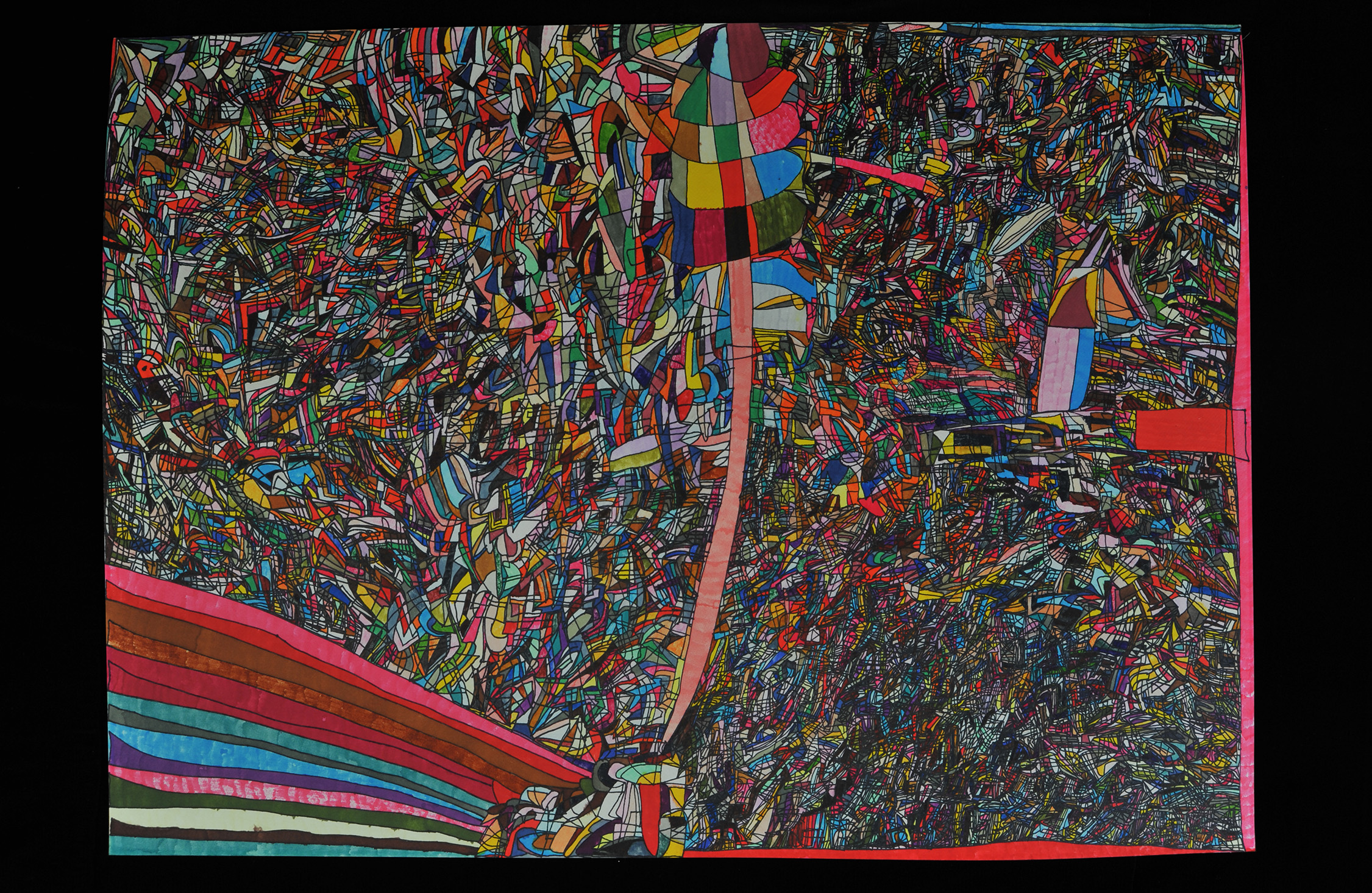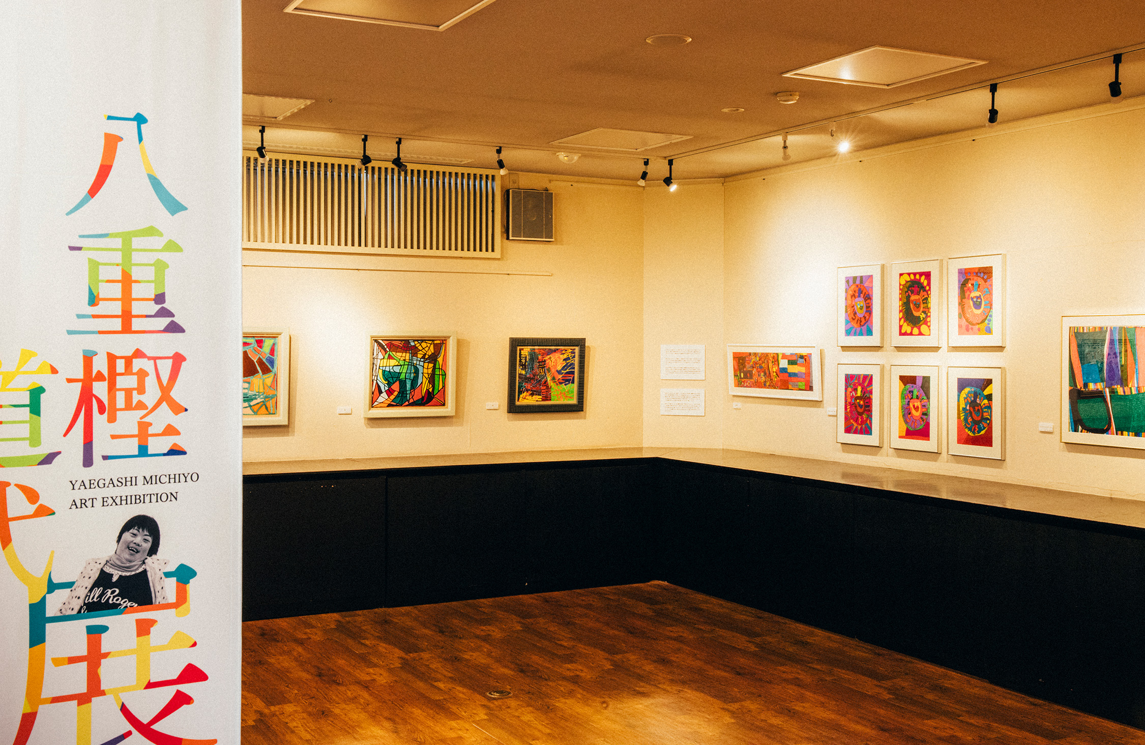 その日は八重樫道代さんの個展が開催されていた。彼女の緻密な構成に基づいた緻密にひしめき合う作品の数々を初めて目の当たりにする。ブラシマーカーを用いた「宇宙船」という代表作からは、手描き特有のゆらぎが紡ぎ出す色彩の極地に誘われると同時に、緻密なCG(コンピュターグラフィックス)がに吸い込まえるような、不思議な多幸感が同居していた。さらに「おりがみ」という彼女の代表作は岩手県立美術館に収蔵されていて、東京パラリンピックの閉会式では国旗入場の際に競技場に映し出された。