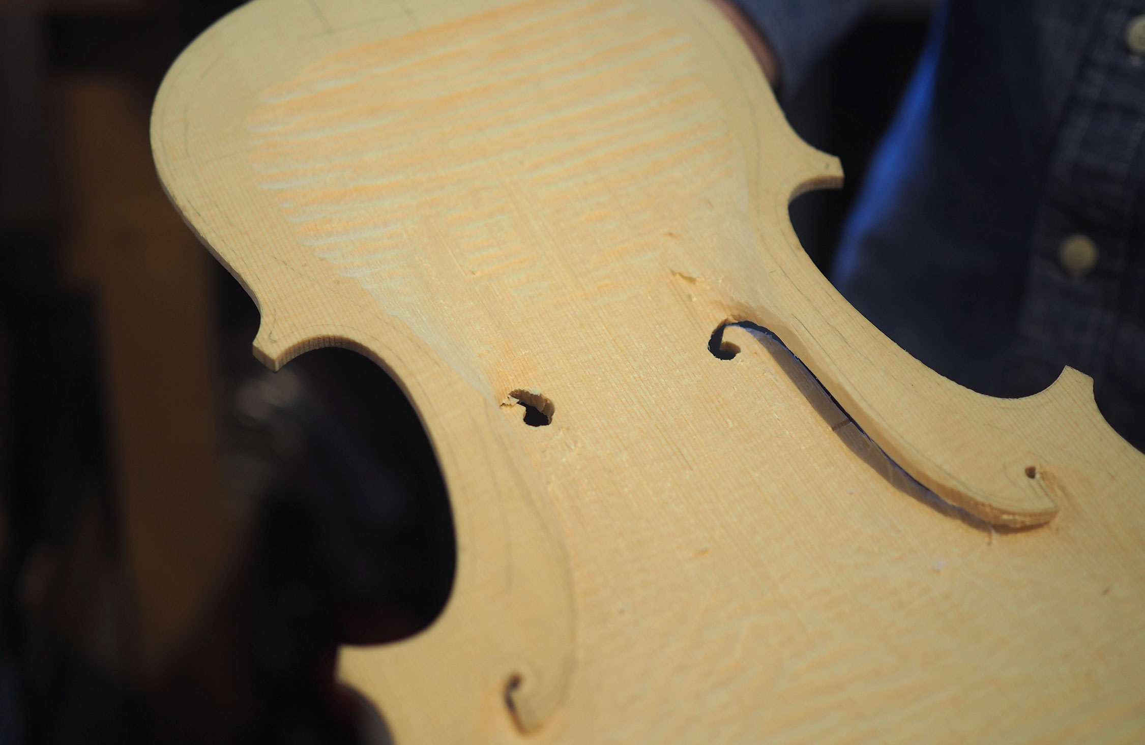 「1年生では木材からヴァイオリンの形を作るところまで。2年生になってようやくニス塗りや弦を張るなどの部分を学んで、弾ける状態の楽器が作れるようになります。修理と修復を学ぶのも2年生で、僕の場合はそこもしっかりと学びたいと思って学校を選んでいました」