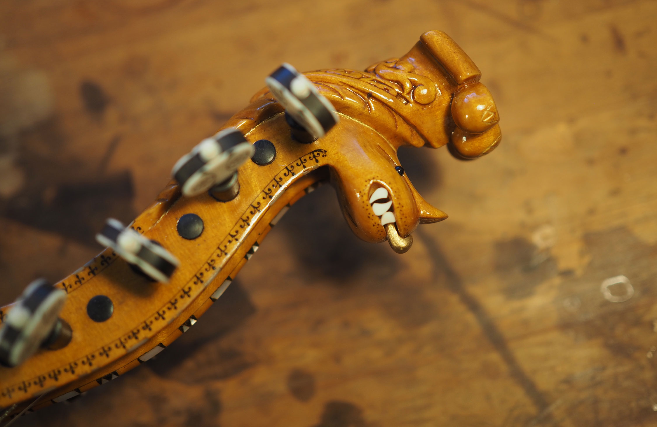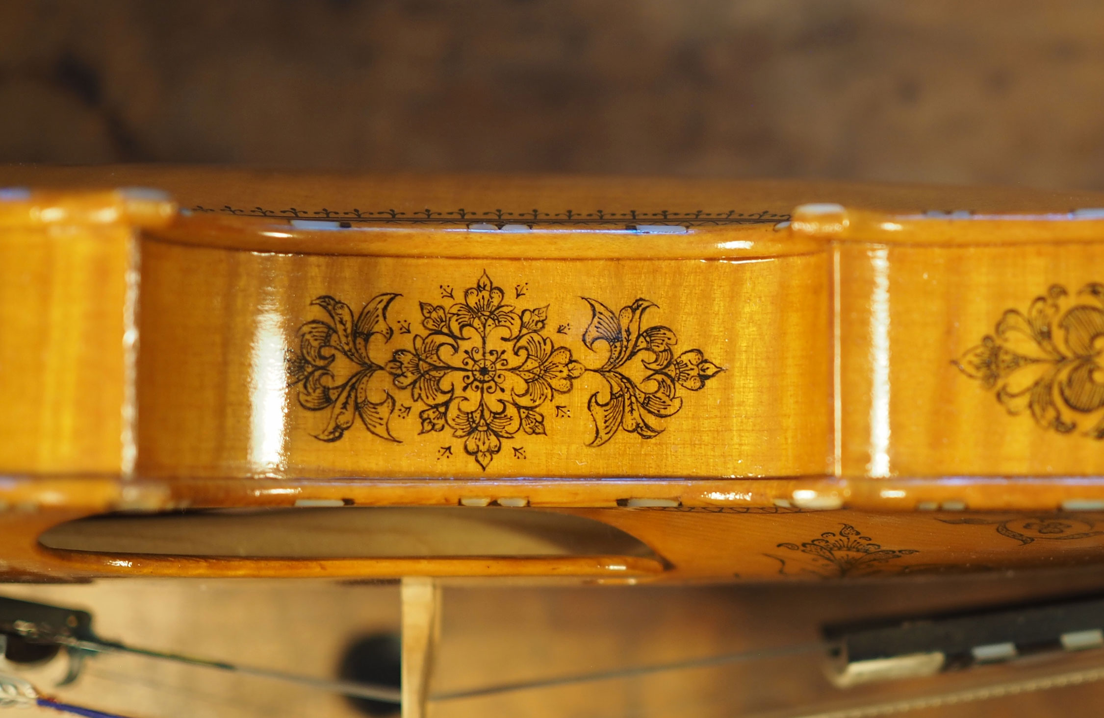 もともとヴァイオリン職人として働いていた原さんにとって大変だったのは、やはりハーディングフェーレ特有の装飾部分。特に「ロージング」と呼ばれる手描きの模様には苦労したそうだ。「誰にも信じてもらえないんですが」と切り出す。