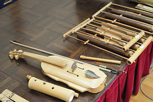ミニライブの後半に入って、「おそらくこの音色が聴けるのは、房総楽竹団だけ」と木下さんが紹介したのは、なんと竹でできたバイオリンだった。弦と弓以外はすべて竹で作られているという竹バイオリンは、インドネシアの職人さんが作ったものだそうだ。優しく、どこか素朴な音色だった。