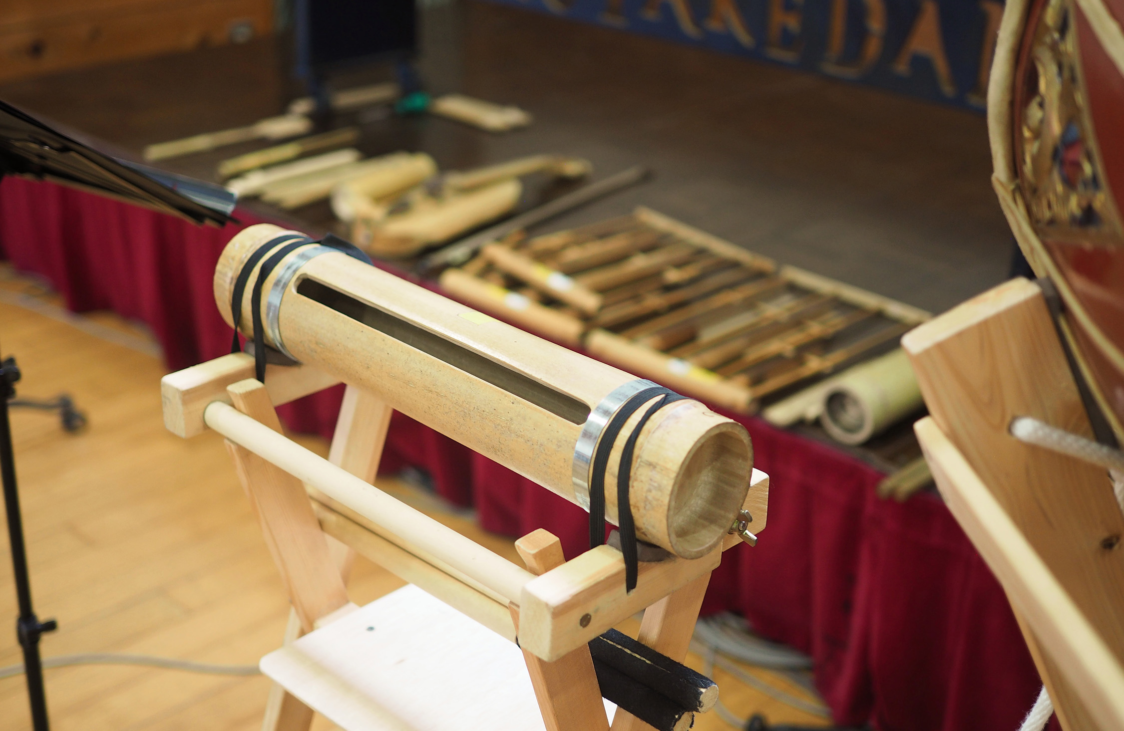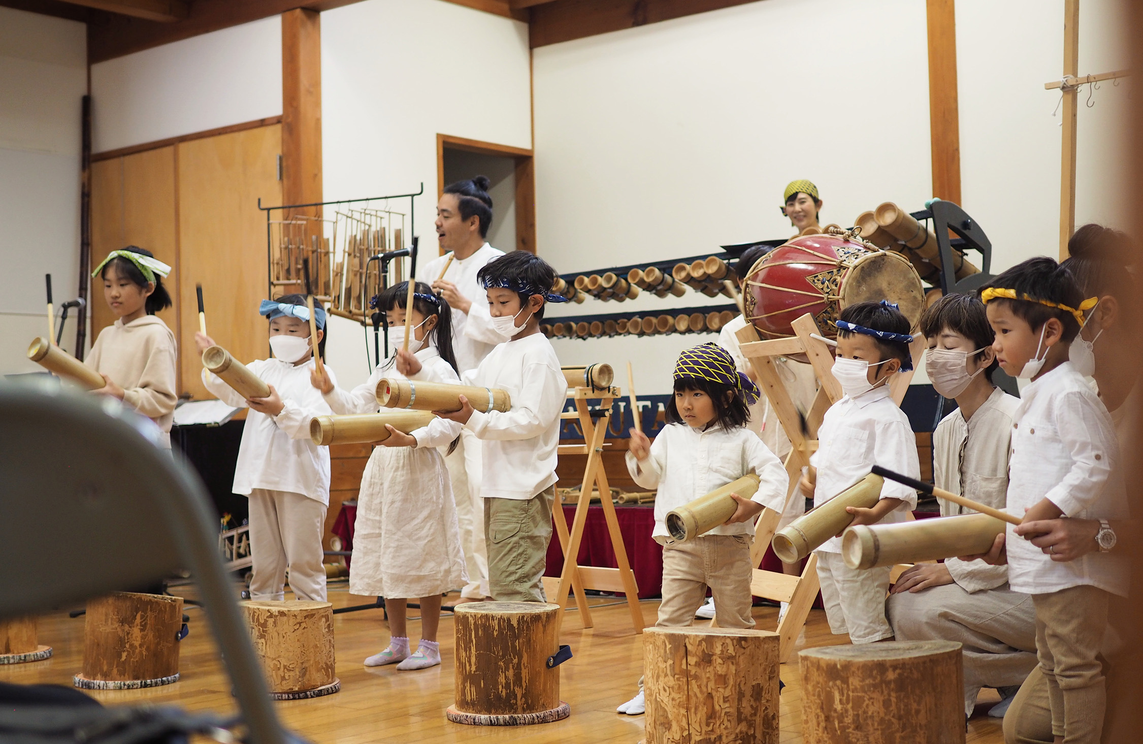 その後も、聞いたことのない楽器が多く登場した。長い竹の節を全部抜いて筒状にしたものをスポンジのついたバチで叩いて低音を出す「スーパーマウイ」。ハンドベルのようにひとつずつ揺らすことでメロディを奏でるインドネシアの楽器「アンクルン」。切れ目の入った竹を、同じく竹の棒で叩く「スリッタム」。