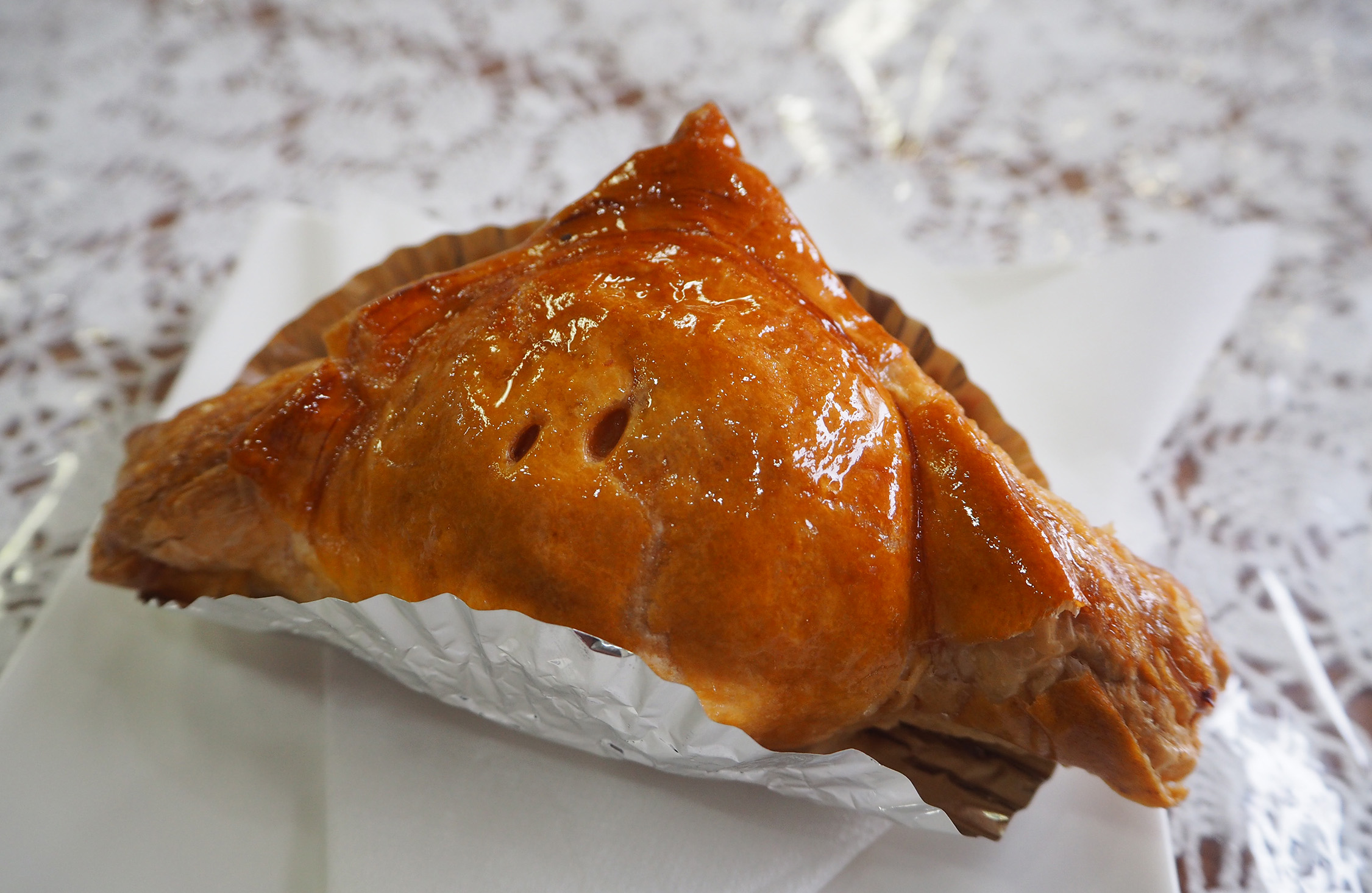 三角形をしたジャルダンのアップルパイは、パリッとした香ばしい生地のなかに、軟らかく煮られたリンゴがギュッと詰まっていてジューシー! 見た目はボリューミーだけど予想外にサッパリ軽めの風味で、これなら何個でも食べられそう。コンシェルジュのふたりも、おいしい、おいしいと頬張っていて、お客さんやふたりの様子からもジャルダンへの愛を感じた。