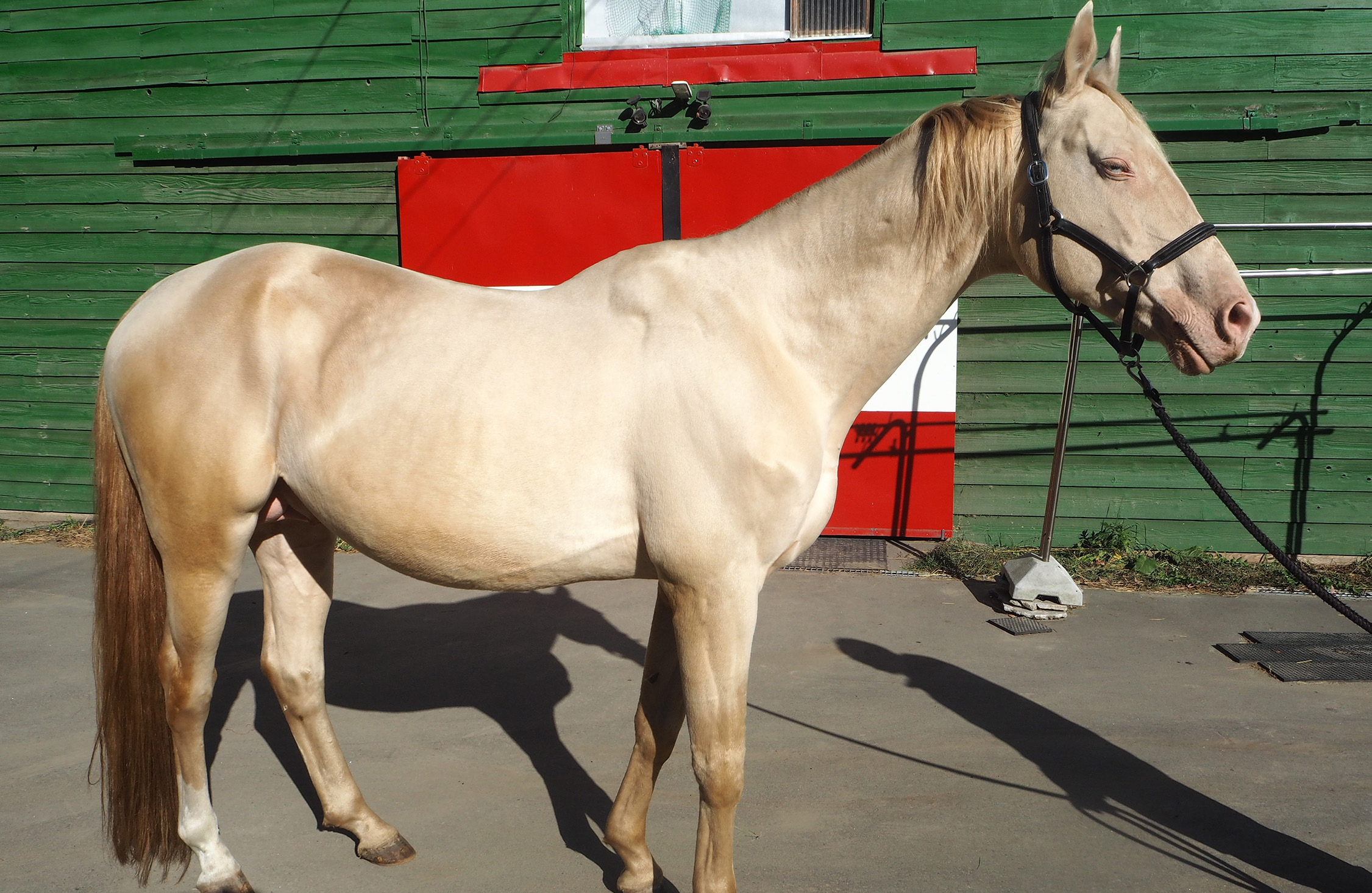 トレッキングの後、馬房にいるアハルテケを見学させてもらった。リアルなアハルテケの光沢は「光り輝く」という表現がぴったり。陽の光に照らされたその姿はまさに「黄金の馬」で、何度もため息が出るほど美しく、「高貴」という言葉が頭に浮かんだ。友人もその眩い姿にただただ見惚れていた。