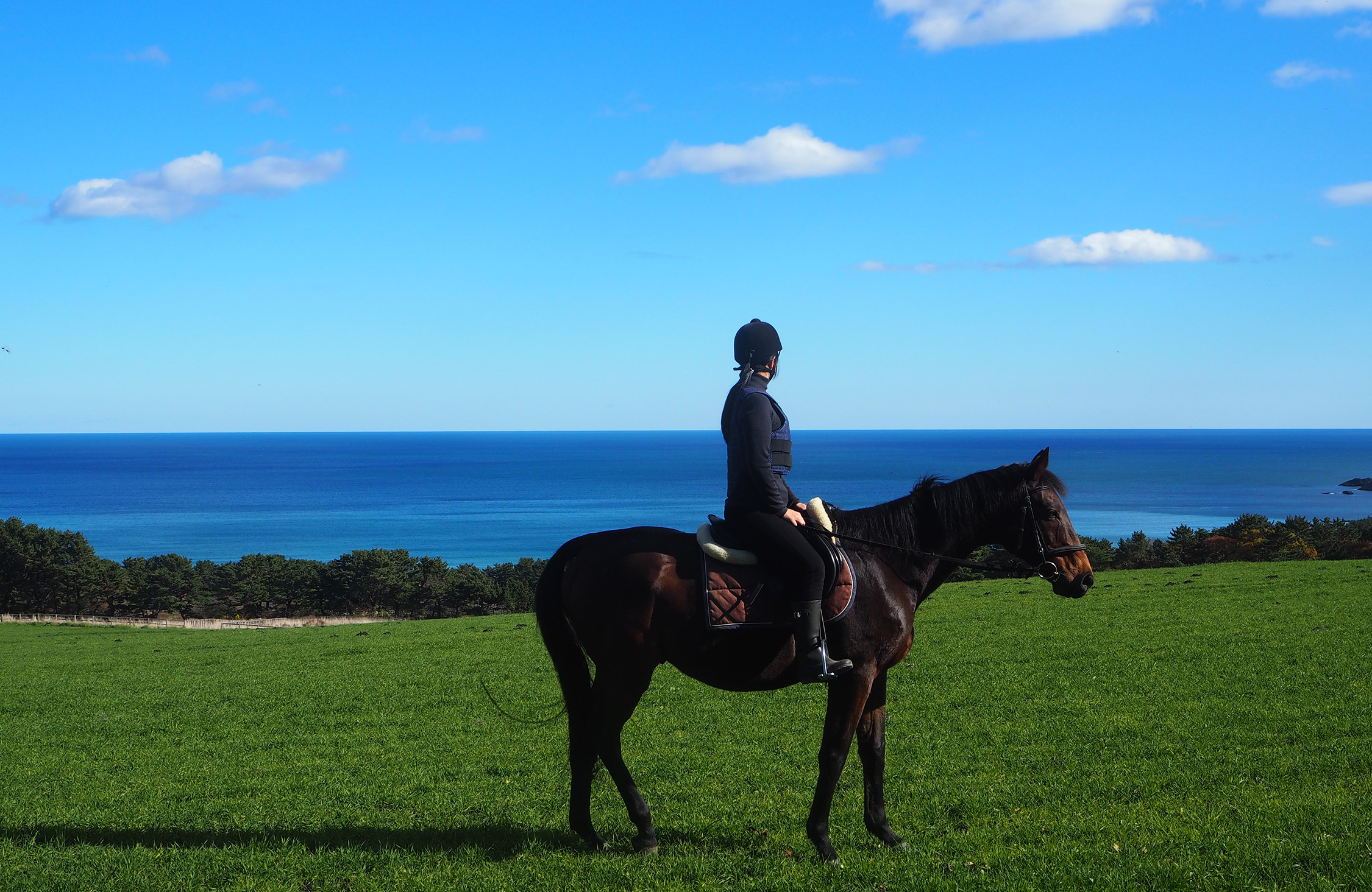 長谷川さんは「黄金の馬」の美しさをたくさんの人に知ってもらいたいという想いから、牧場でアハルテケの見学を受け入れている(一般公開はしていないので、要問い合わせ)。アハルテケは非常に繊細なので乗馬は受け付けていないが、サラブレッドなどほかの馬でトレッキングをしたり、乗馬レッスンを受けることもできる。