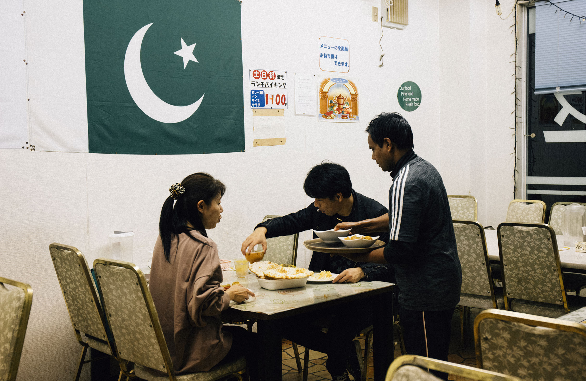 出来上がる時間を見計らって、若いパキスタン人が店に入ってきた。サキさんはできたてのプラウをプラスチック製の洗面器いっぱいに詰め込み、その客に手渡した。大胆かつ合理的な発想に私は目が点になった。しかし彼は容器のことは気にも止めず、「これ、ウマいんだよね~」と流暢な日本語で私に語りかけ、颯爽と店を後にした。