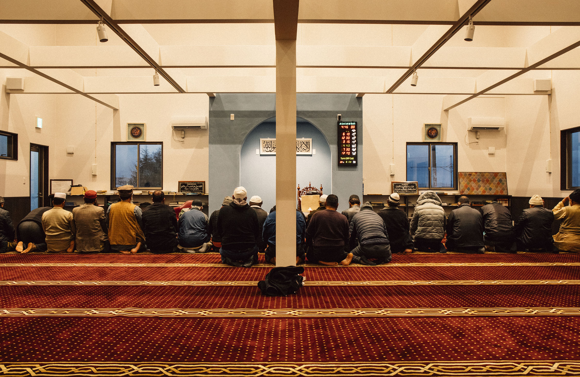 私は旅の最後に「富山モスク」を訪れることにした。それまでは元コンビニだった居抜き物件を改装した簡易的な寺院だったのを取り壊し、約1年かけて同じ場所に新たなモスクを建設、2021年8月に竣工した。建物の扉を開けて靴を脱ぎ、絨毯の敷かれた広間に入ると、小さな子どもたちがアラビア語の勉強をしていた。私を見つけて歩み寄ると、人懐こい笑顔で「日本人?宇宙人?」と畳みかけてきた。それはかつて私がアラビアの街角で経験した、やんちゃな子どもたちとのやり取りを思い出させた。「オレ、小2」「今日幼稚園でフルーツバスケットやった!」「あたりまえやん」と、とにかく流暢な彼らの会話に耳を傾けていると、夕方の礼拝に参加するムスリムたちが続々とモスクに集まり始めた。ほとんどは男性だが、異教徒の私を見つけて話しかけてきてくれたり手を振ってくれたりと、誰もがフレンドリーだ。私の横でモスク設立の経緯を教えてくれた親切な紳士が、奥ゆかしい笑顔で「じゃあ、お祈りが始まるから」と立ち上がって祈りの輪に加わった。