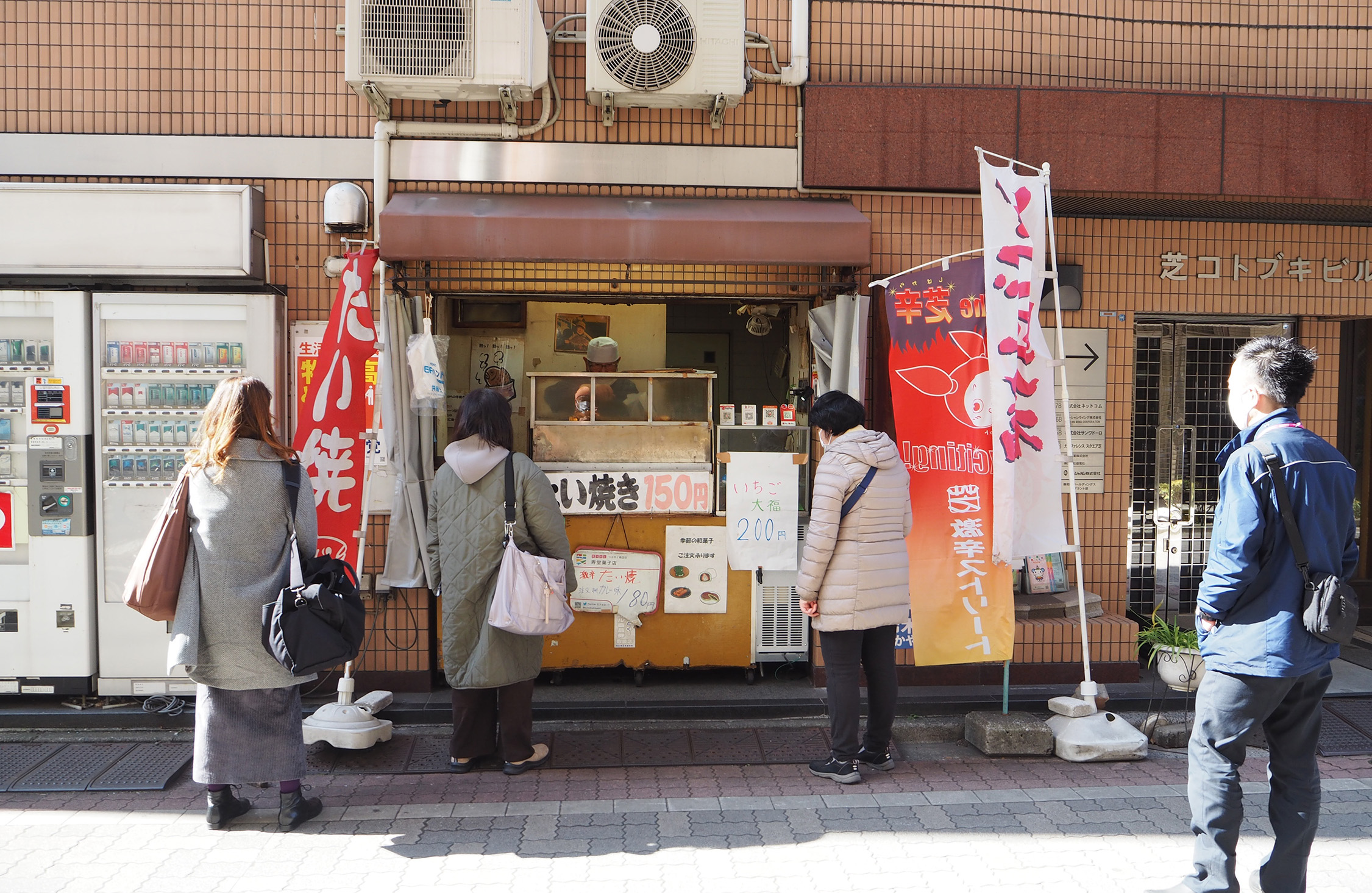 迎えた取材当日。JR田町駅から徒歩10分弱で、芝商店会に着いた。ヒナエちゃんとは12時半に、商店会の入り口にあるたい焼き屋さん「芝の寿堂」前で待ち合わせた。