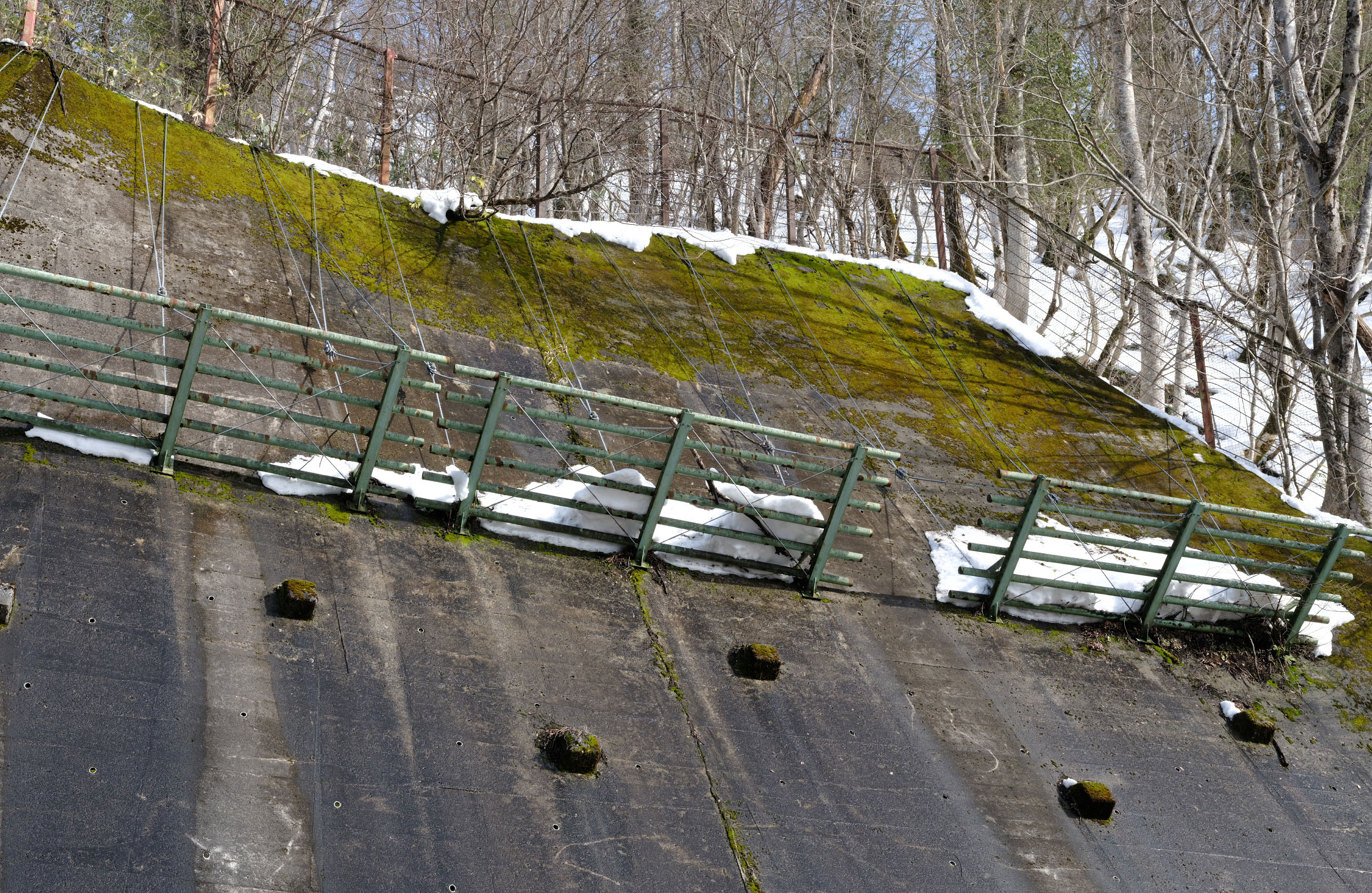 中谷地区で見た「吊柵(つりさく)」は、重厚な構造物に比べたら施工が容易な構造物であることは、素人の私でも見てとれた。落雪を防ぐ役割のこの吊柵は、急勾配な斜面や不安定な地質の場所にも設置できるという。その場所に適した防雪施設があるというわけだ。