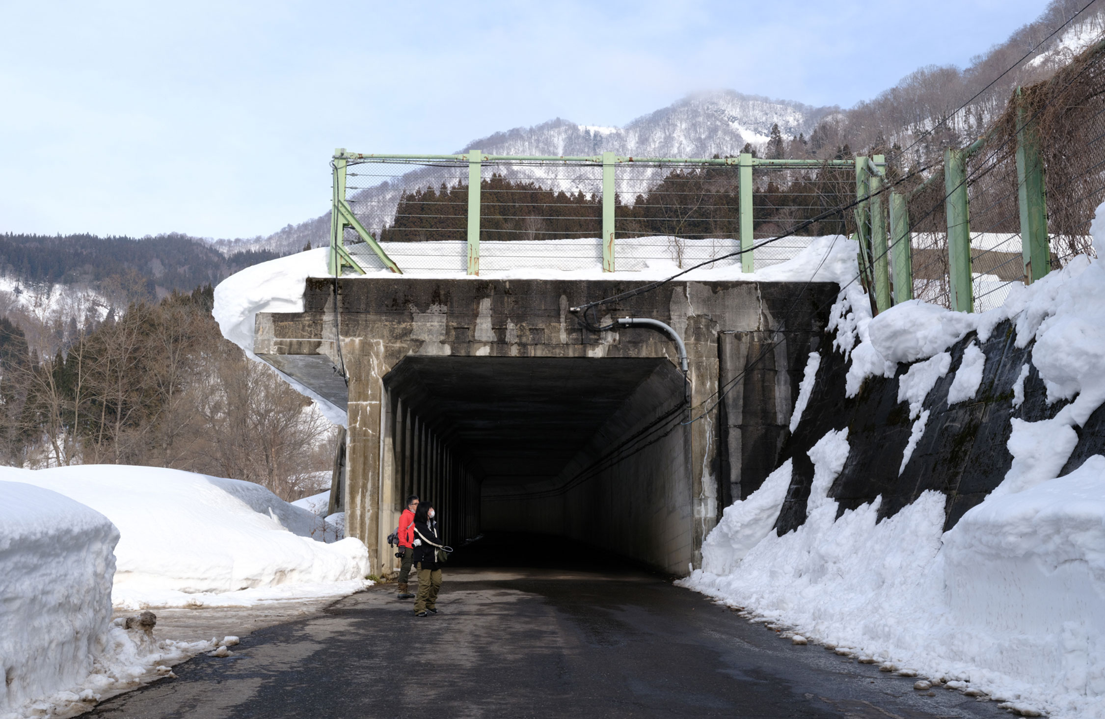 今度は同じ中谷地区で、巨大な雪崩が毎年のように発生するという「大なで沢」へと向かった。小谷村でも有数の豪雪地へ向かう県道に配置された「大なで沢 スノーシェッド」は箱型の構造であり、この上にデブリが堆積されても、その荷重に耐えられるよう強固な作りになっている。このシェッドができたことで、厳冬期でも車が安全に通行できるようになった、と和澤さん。