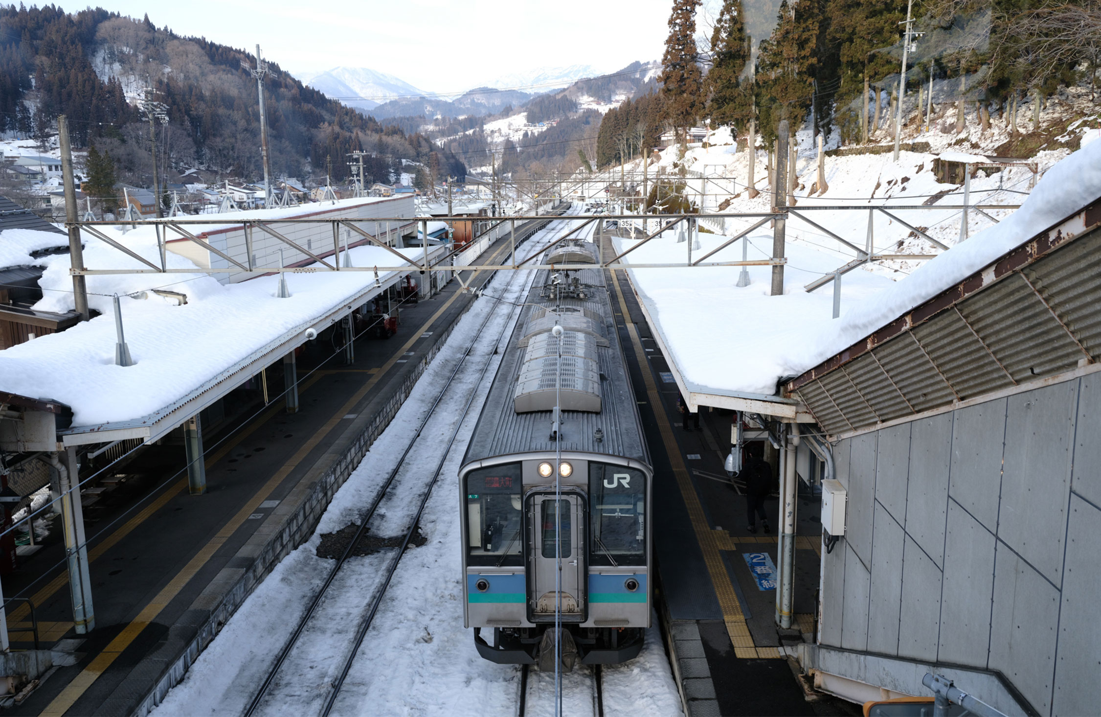 さて新幹線に乗るために、私たちはまた大糸線に乗ることにした。再び大糸線に揺られながら、ふいに前日、車窓から見えた灰色の雪の塊のことを思い出した。ああ、あれは雪崩の跡、デブリだったんだなぁ……と、ようやく気がついた。