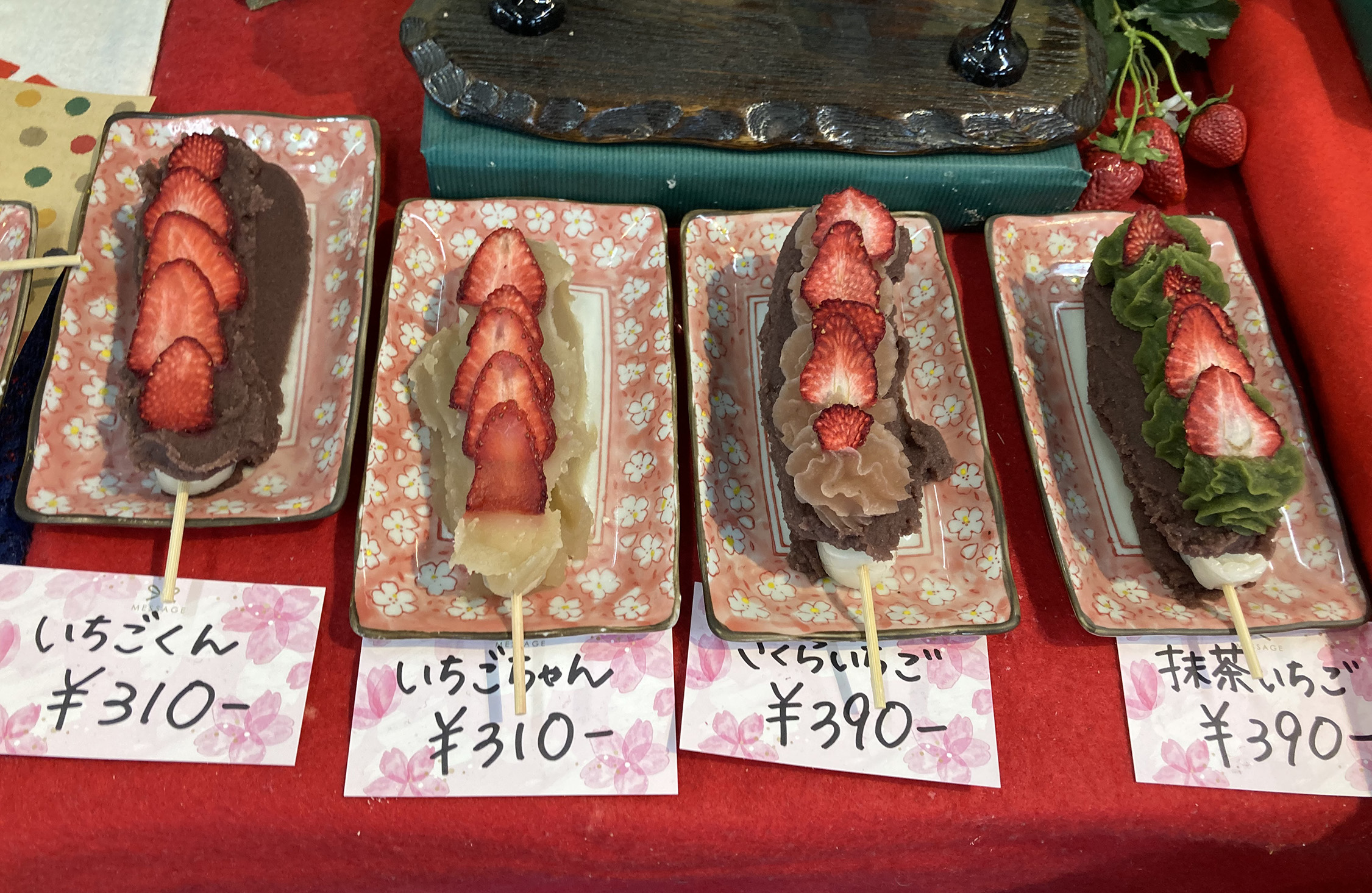 きっとレジの後ろに大きく張り出されているしょうゆ、ずんだん、ごま、あんこ、くるみ、ナッツが定番商品だろう。僕はこの6品と気になった「いちごくん」を注文した。