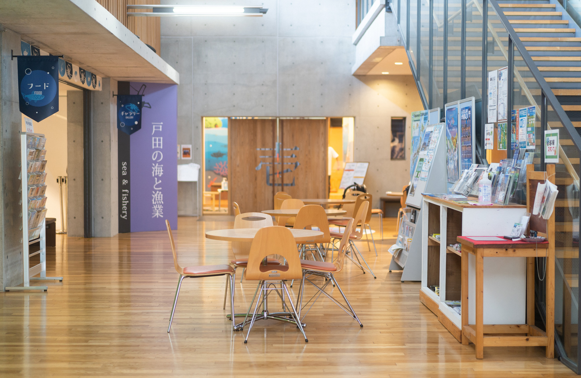 売店のほか足湯や温泉、深海ギャラリーなどが併設された同施設。観光客向けと思いきや、地元住民が集うコミュニティスペースや会議室もあり、楽しげな声が聞こえてくる。