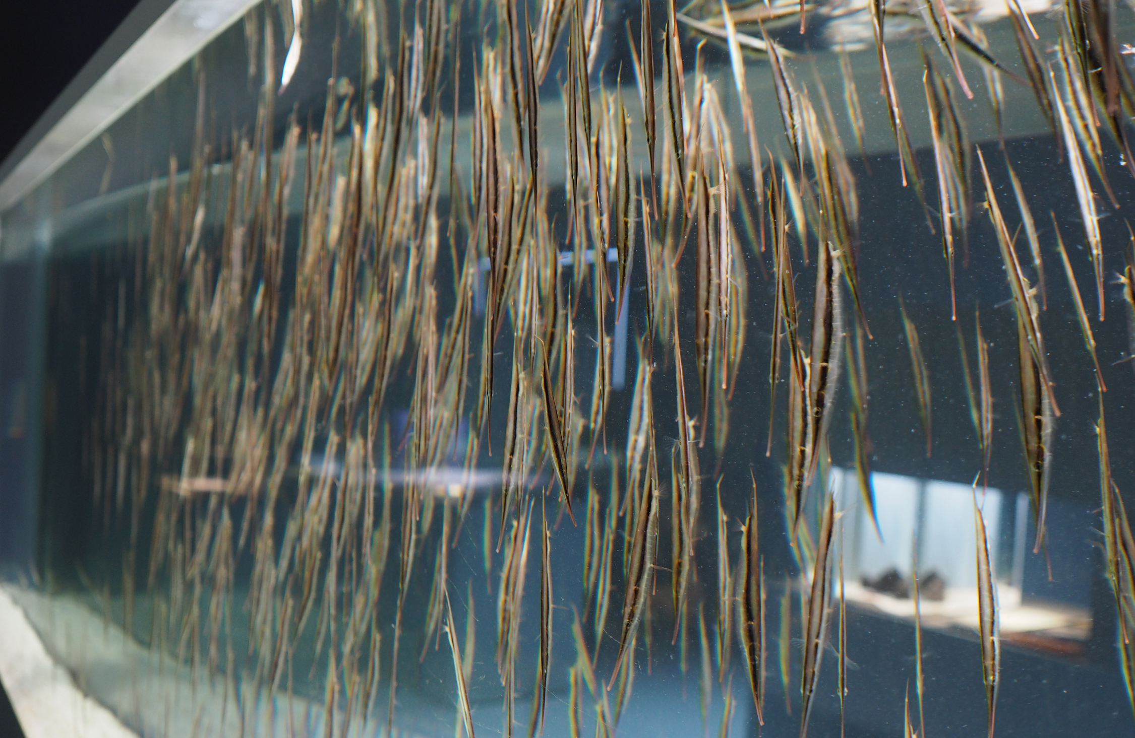通路を進むと、一気に明るくなる。「LIBRARY AQUARIUM / 観察と発見の部屋」では、ほかの水族館にはない分類で生き物が展示されている。
