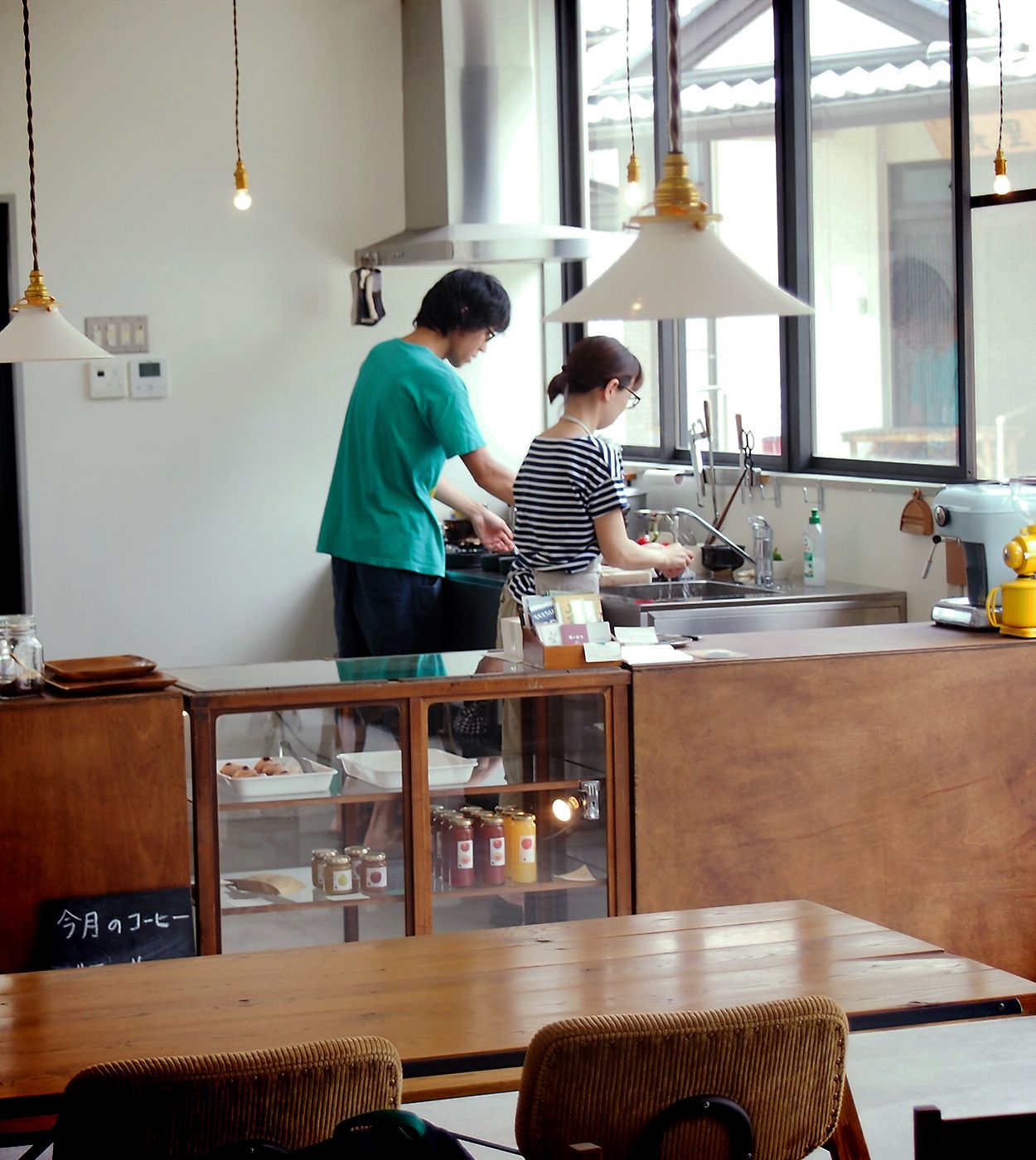 アトリエから車で10分ほどの中川村に、飯田さんおススメの「ベースキャンプコーヒー」はあった。以前は農協の建物だったというだけあって、外観は農協そのものだが、内装はきれいにリノベーションされて今風のおしゃれなカフェになっている。