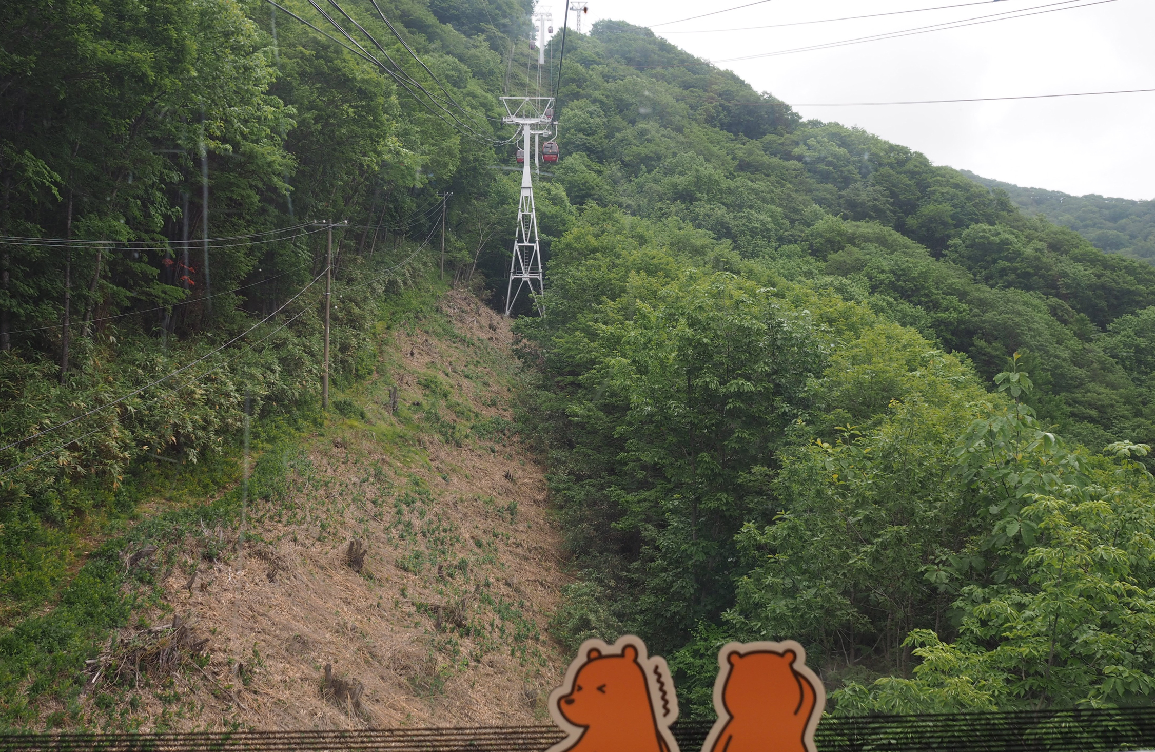 札幌駅から特急で70分の登別駅で降りる。そこからバスかタクシーで約15分の登別温泉街に、ロープウェイ山麓駅がある。そこで全長1260メートルのゴンドラに乗ると、あっという間に山頂にあるのぼりべつクマ牧場に着く。