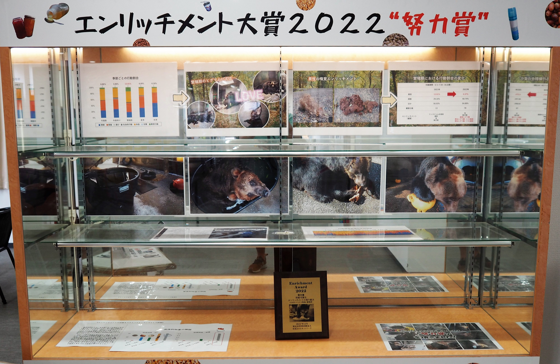動物園や水族館の飼育環境を豊かにするための取り組みを表彰する、「エンリッチメント大賞」というアワードがある。市民ZOOネットワークの主催で2002年からスタートしたこの賞は、「飼育動物の幸福な暮らしを実現するための具体的な方策」を評価、表彰するもので、のぼりべつクマ牧場は2022年、大賞に次ぐ努力賞を受賞した。