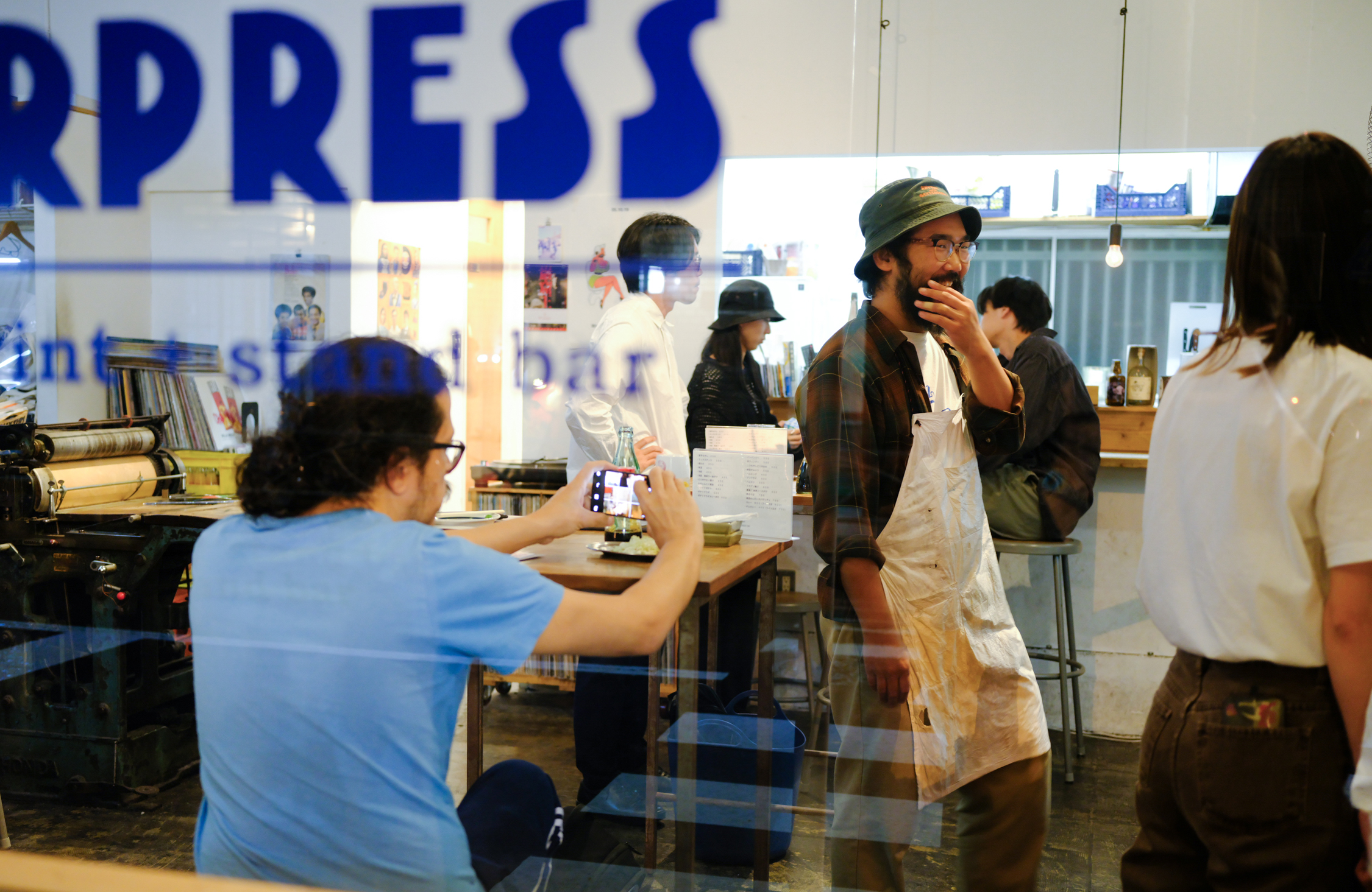そして夕方になれば、印刷所は立ち飲み屋へと変わる。デザイナーなどのお客さんたちや、印刷会社の人など同業者が来ることも多いという。