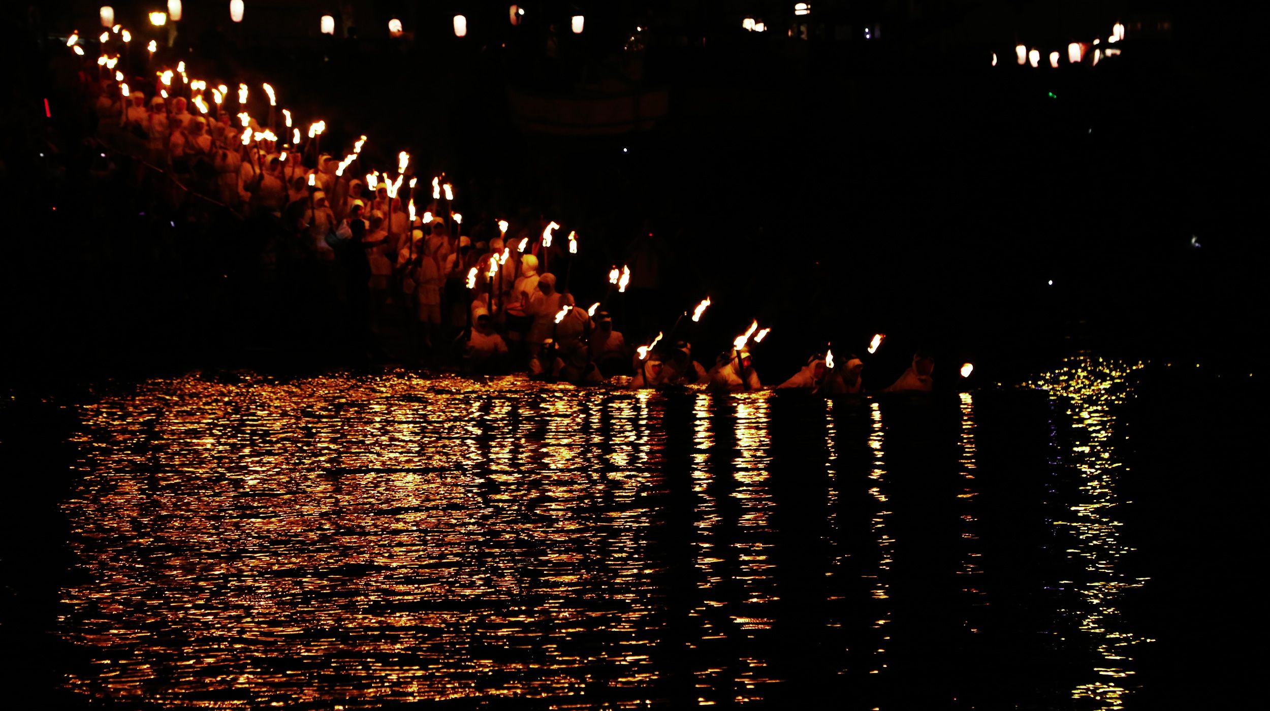 役目を果たした達成感と虚脱感、全身疲労がごちゃまぜになった状態で陸にあがると、休む間もなく観客がねぎらいの言葉と拍手で迎えてくれた。それは、松明を消火し、本部前に再集合するまでいつまでも続いた。