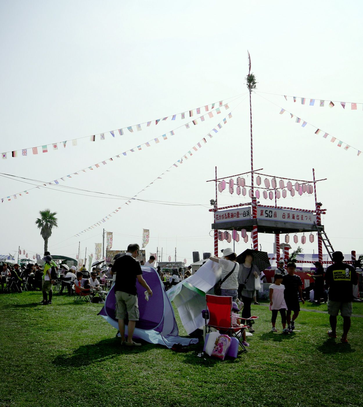 祭りの舞台は、千葉県房総半島の最南端、野島崎灯台そびえ立つ南房総市白浜町だ。東京駅から館山方面行きの高速バスに乗り2時間半、会場横の停留所「南海荘」に到着すると、開始時間前にも関わらずそこはすでにたくさんの人でにぎわっていた。