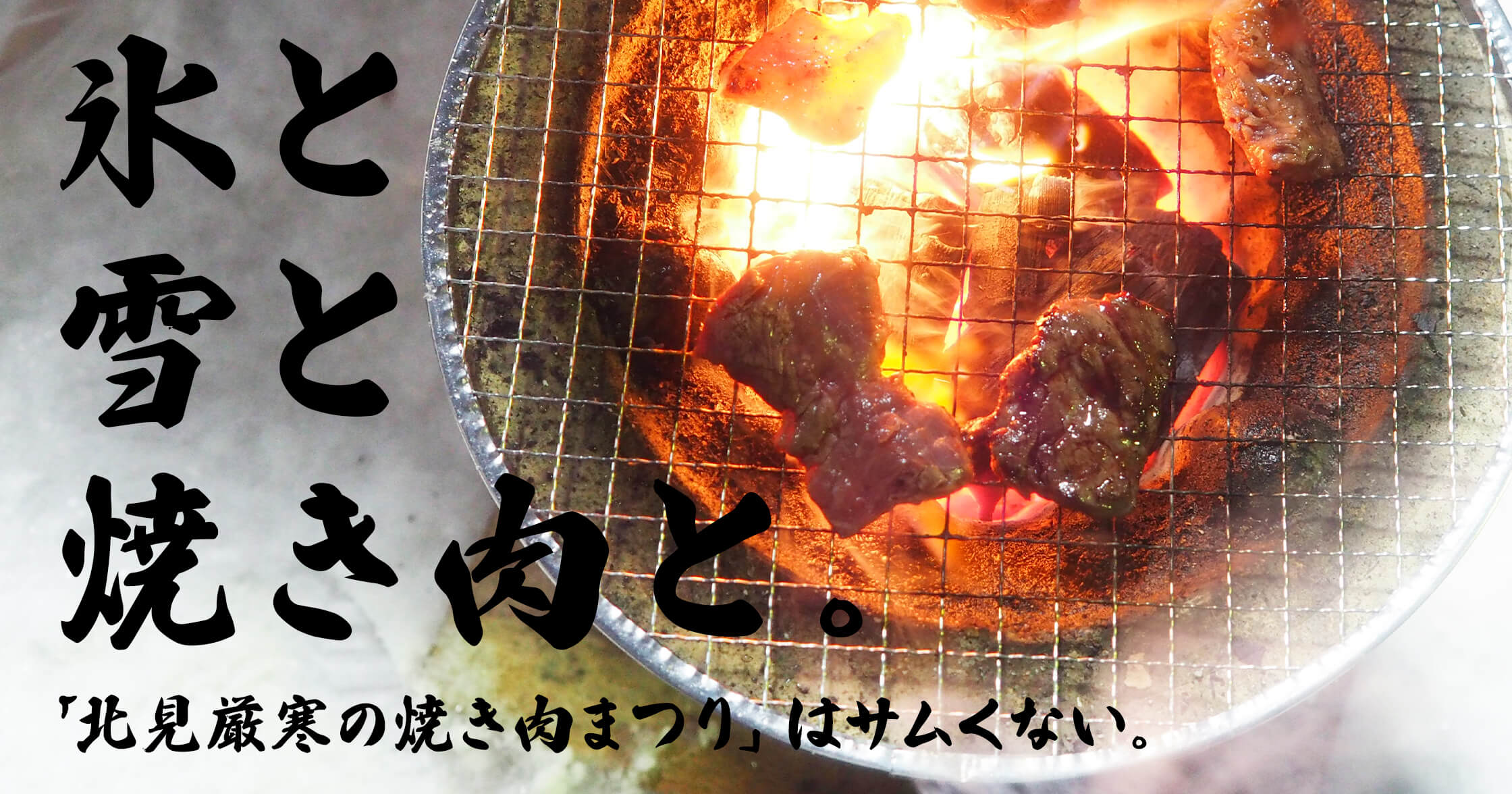 このベタな発想を、氷と雪でビューッと吹き飛ばしてくれるお祭りがある。冬にはマイナス20度を下回る北海道北見市で、2000年から開かれている「北見厳寒の焼き肉まつり」。北海道屈指の寒さを誇る地に集った人たちが、「真冬の夜のアウトドア焼き肉」に挑む……いや、楽しむ祭りだ。