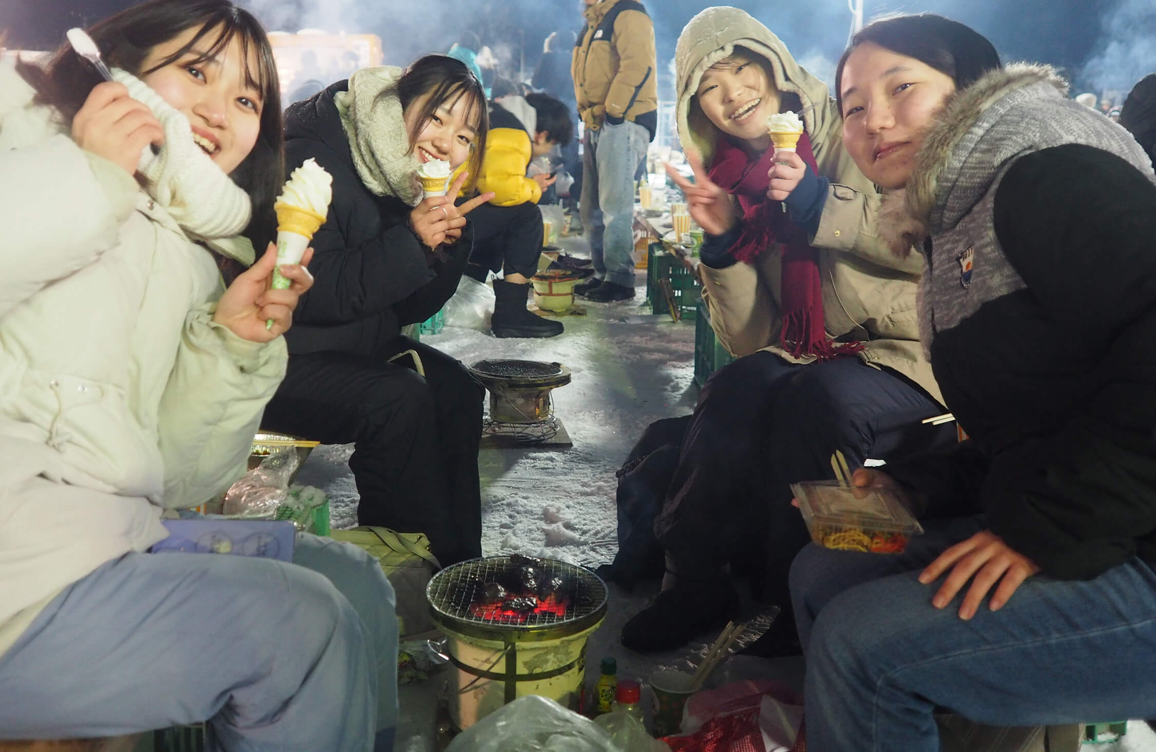 「ずっとここで、アイスを食べたかったんです。この寒さなら溶けずに食べられるかなって!」