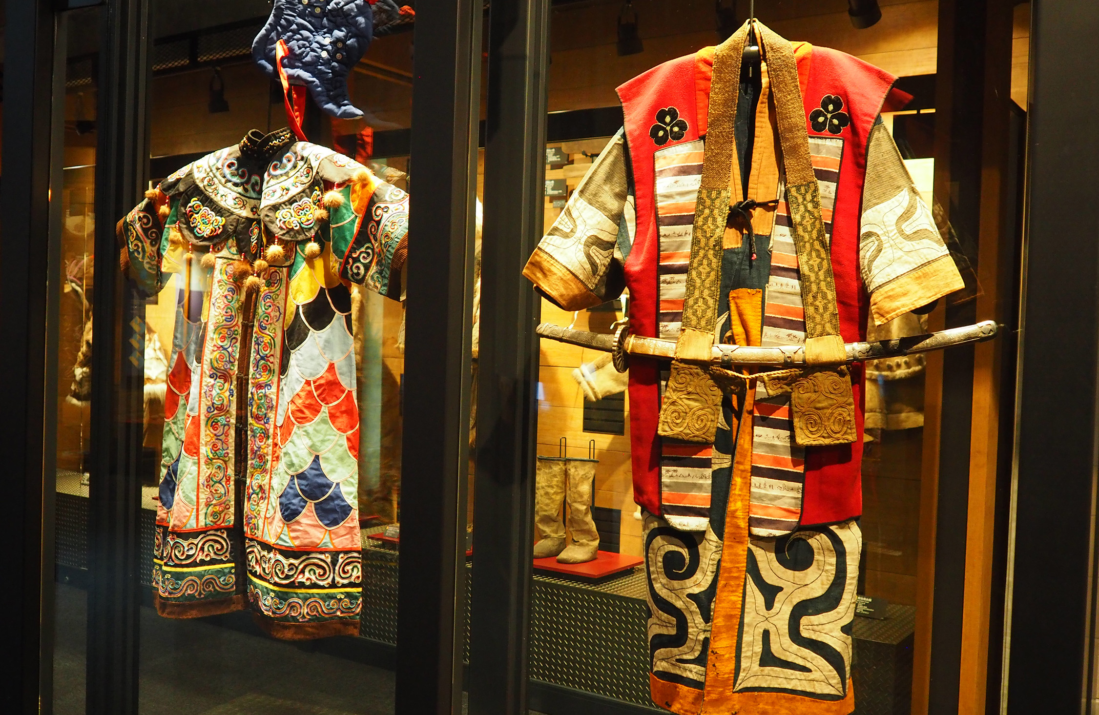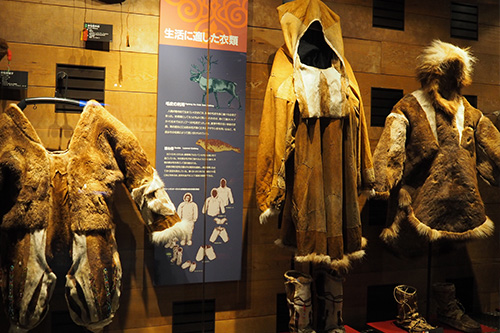 展示室を進むと、最初に目を引くのが北方民族の衣類。トナカイの毛を使ったモコモコの服は、とにかく暖かそう。寒さをしのぐための衣類としてイメージ通りだったけど、民族によってデザインが微妙に違うのが面白い。