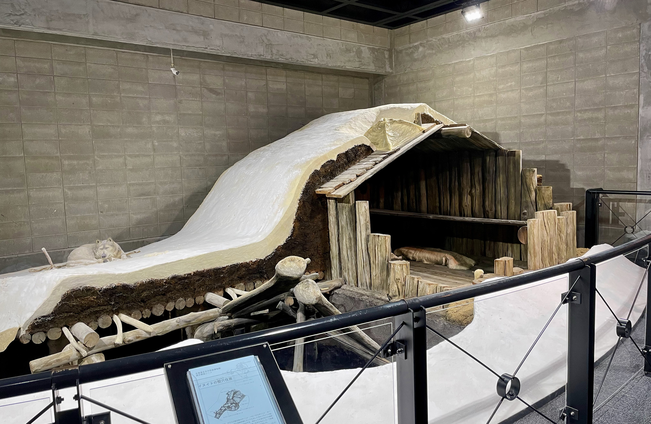 衣類の次は「食」の展示があり、ひと通り野口さんの解説を聞いた後、「住居」の展示へ。そこには、「エスキモーの竪穴住居」が再現されている。伝統的な半地下の建物で、1960年代までこのような家に住んでいる人がいたそうだ。なにも知らずに見たら、「ふーん、こんなところに暮らしてたのか」で終わりそうなこの家が、実は外の気温マイナス数十度でも室内を30度前後に保つ性能を持つと知って、仰天した。