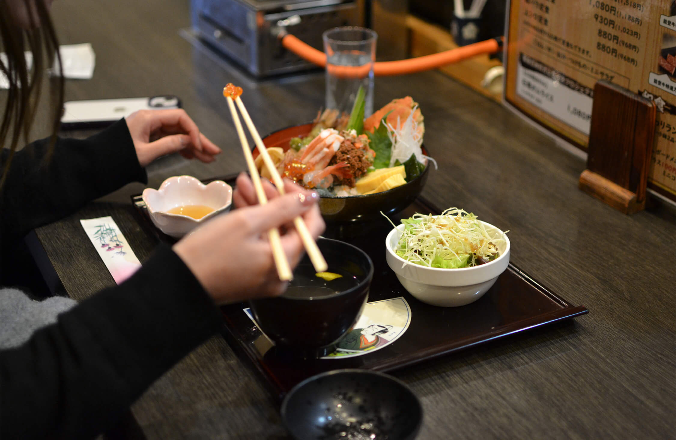 県外からこの石焼きオムライスを求めてくる人もいるという。だが、オムライスだけで来るにはもったいない。「焼肉旬彩 牛太郎」という店名ながら、牛太郎では今も和食を出していて、魚介はすべて大作さんが金沢の市場へ足を運び自分の目で見て、厳選した魚のみを提供している。なべちゃんに金箔入りの香箱ガニランチセットを少し分けてもらったが、あまりのおいしさに後ろに倒れそうになった。