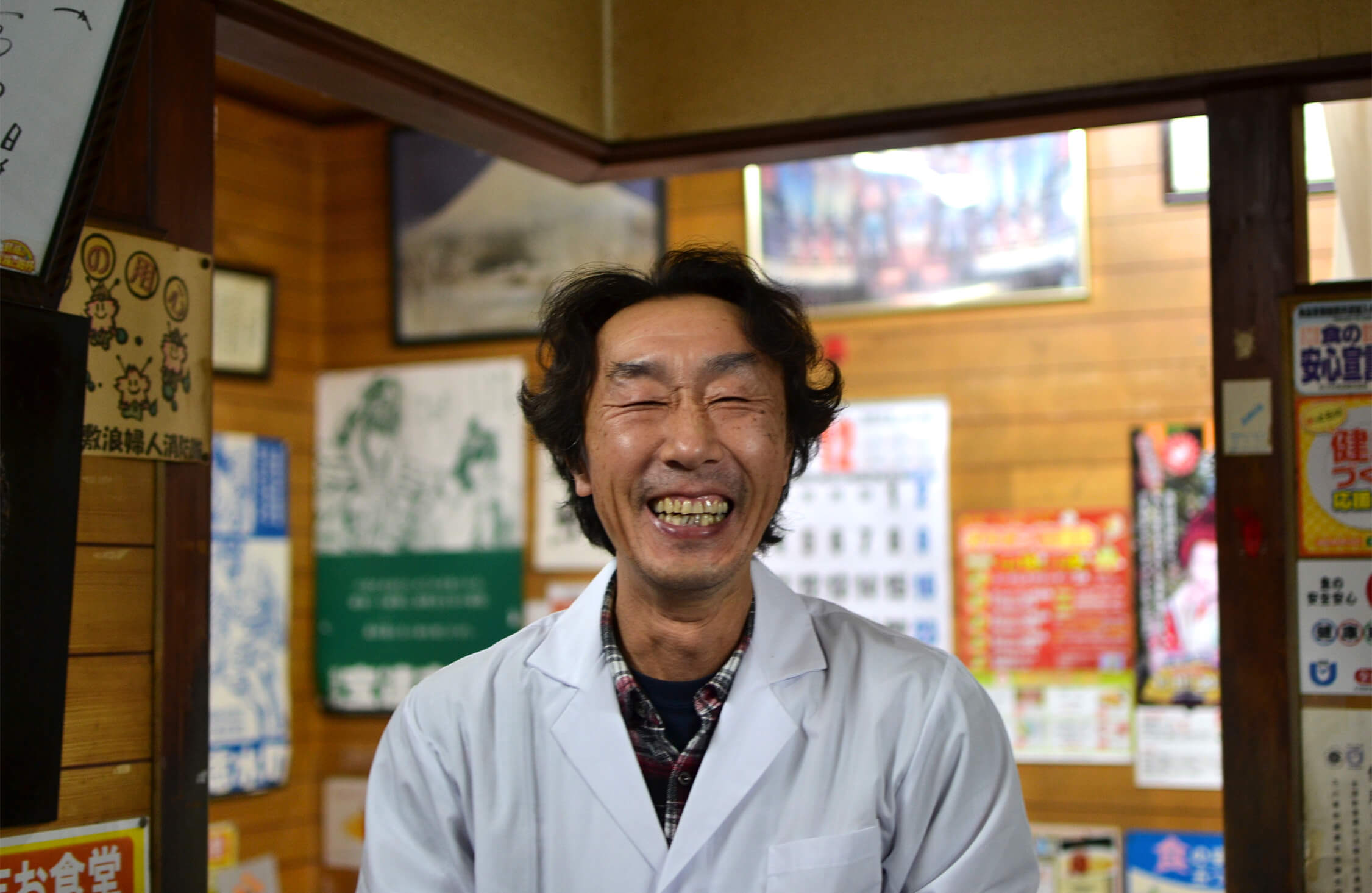 昔ながらの玄関の引き戸を開け、店内に入る。お店の中は昭和の食堂映画のセットのようだった。壁には、笑福亭鶴瓶が来店し、店主と撮ったツーショット写真が飾ってある。