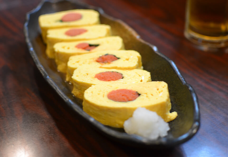 明太子だし巻きも箸でつまみホフホフいいながら口へ入れる。ああ、幸せ。ビールが進む。