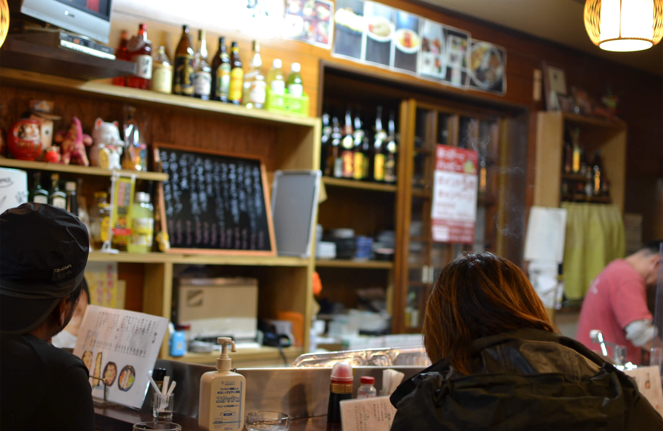20分ほどが経ち、ガラガラと入り口のドアが空いた。30代くらいの女性ひとり、男性ふたりが入ってきた。エル字に曲がった反対側のカウンターに座る。