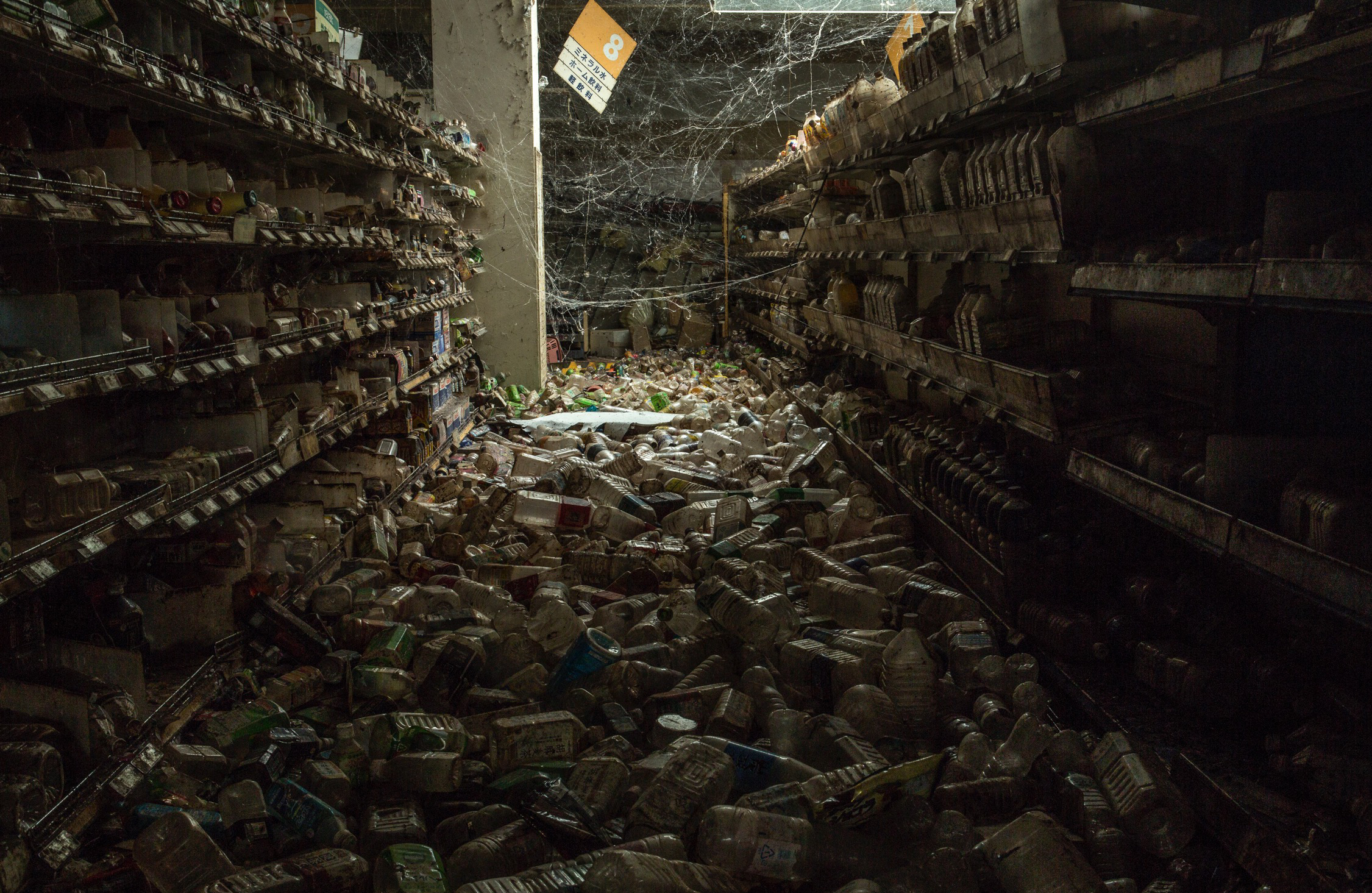 人が消えた商店街。卒業式を終えたばかりの様子の学校。崩れ落ちそうになっている家屋。夜の桜並木。弾かれなくなったピアノ。増えていく黒いフレコンバック。