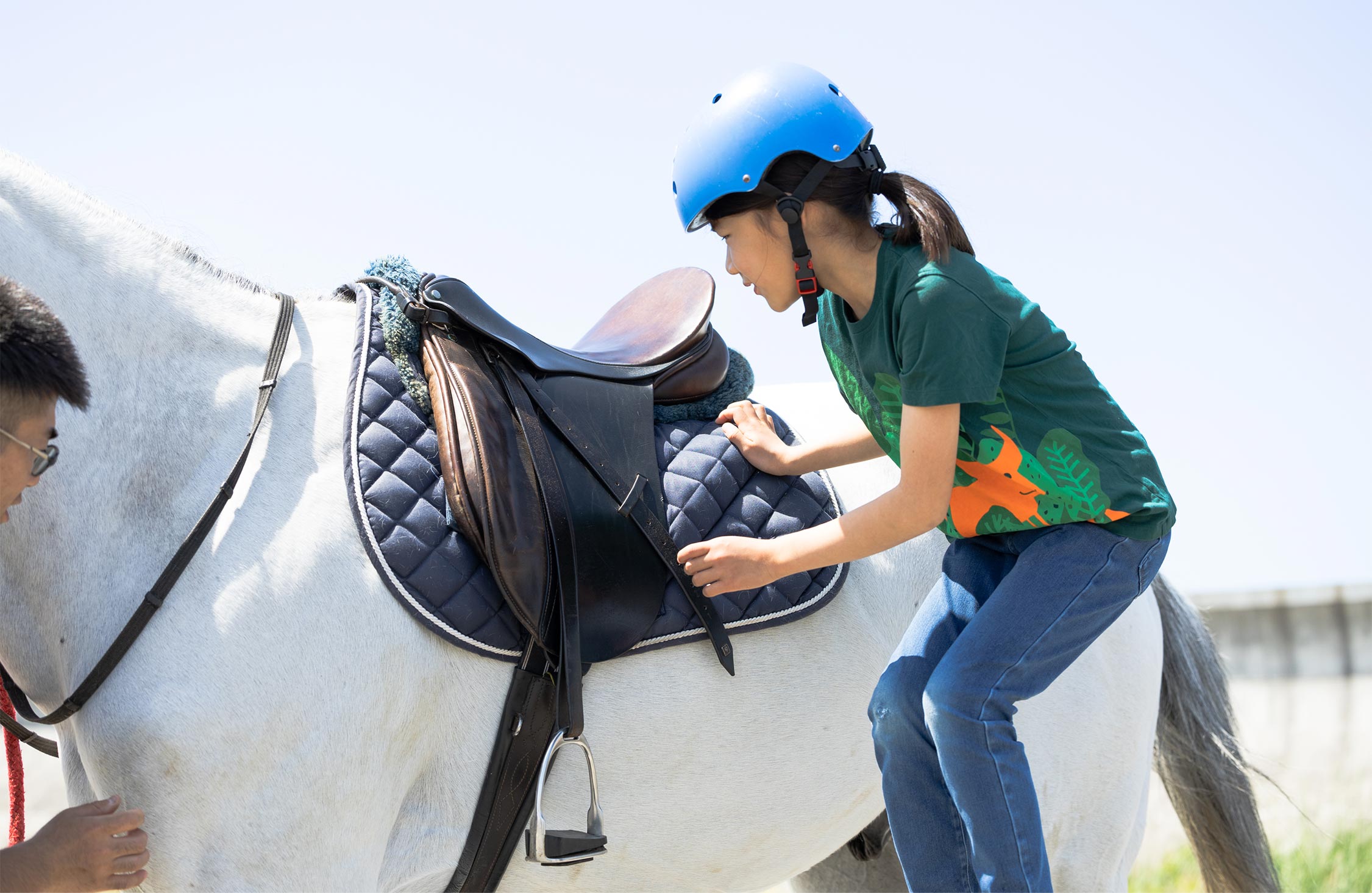 一体どうしたのだろうと近づいてみたら、「寝てますね」と深野さん。「私も眠い」と言いながら娘もまどろんでいる。「小さい子は親と一緒に乗ることも多いのですが、揺れが心地いいのか乗ってすぐに寝ちゃう子もけっこういますよ」とのこと。8才の娘の身体も、やはり野生に近いのだろうと、終了時間を気にして時計を眺めてしまう大人は思う。