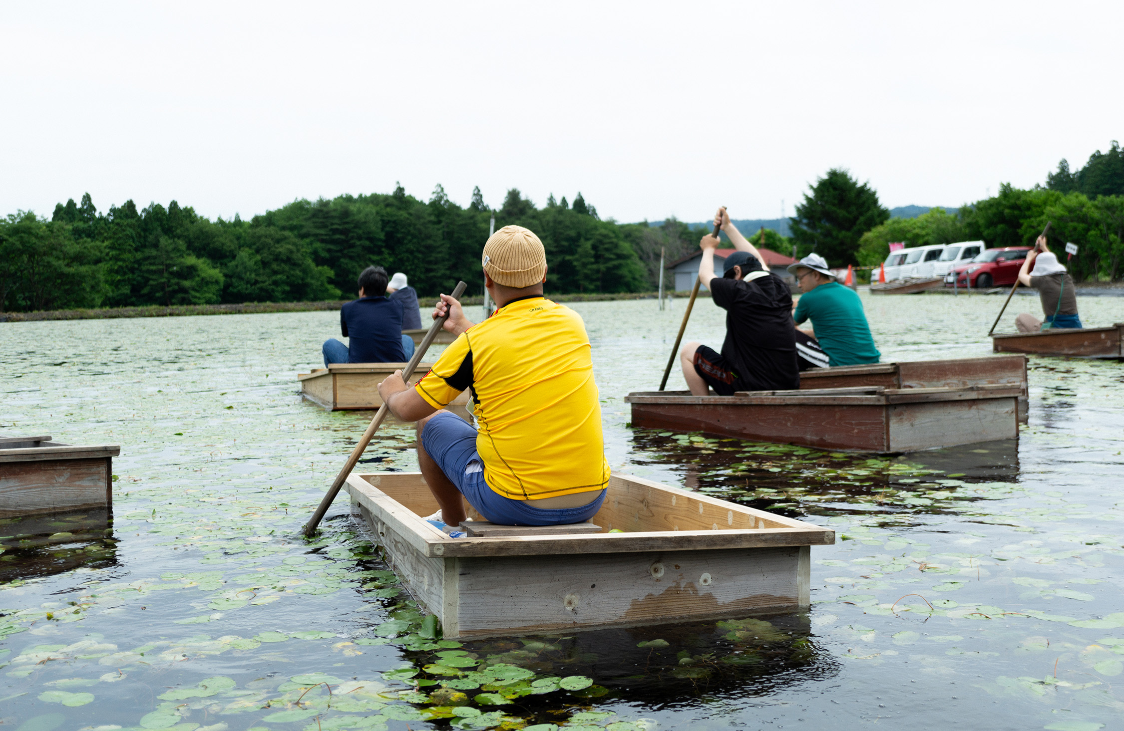 ちなみに……。僕の記録は440グラムでソロの部20人中15位。てっぺんというより、底辺に近い順位だった。世界の頂点は果てしなく遠い。でも、満足度はとてつもなく高かった。箱舟に乗り、無我夢中でじゅんさいを摘み採る1時間は、思いのほか楽しい。